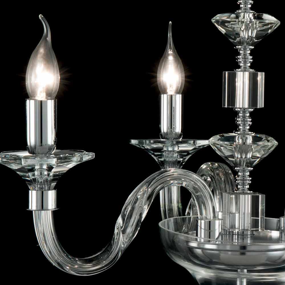 Classic Chandelier 12 Lights in Italian Handmade Glass and Metal - Memore