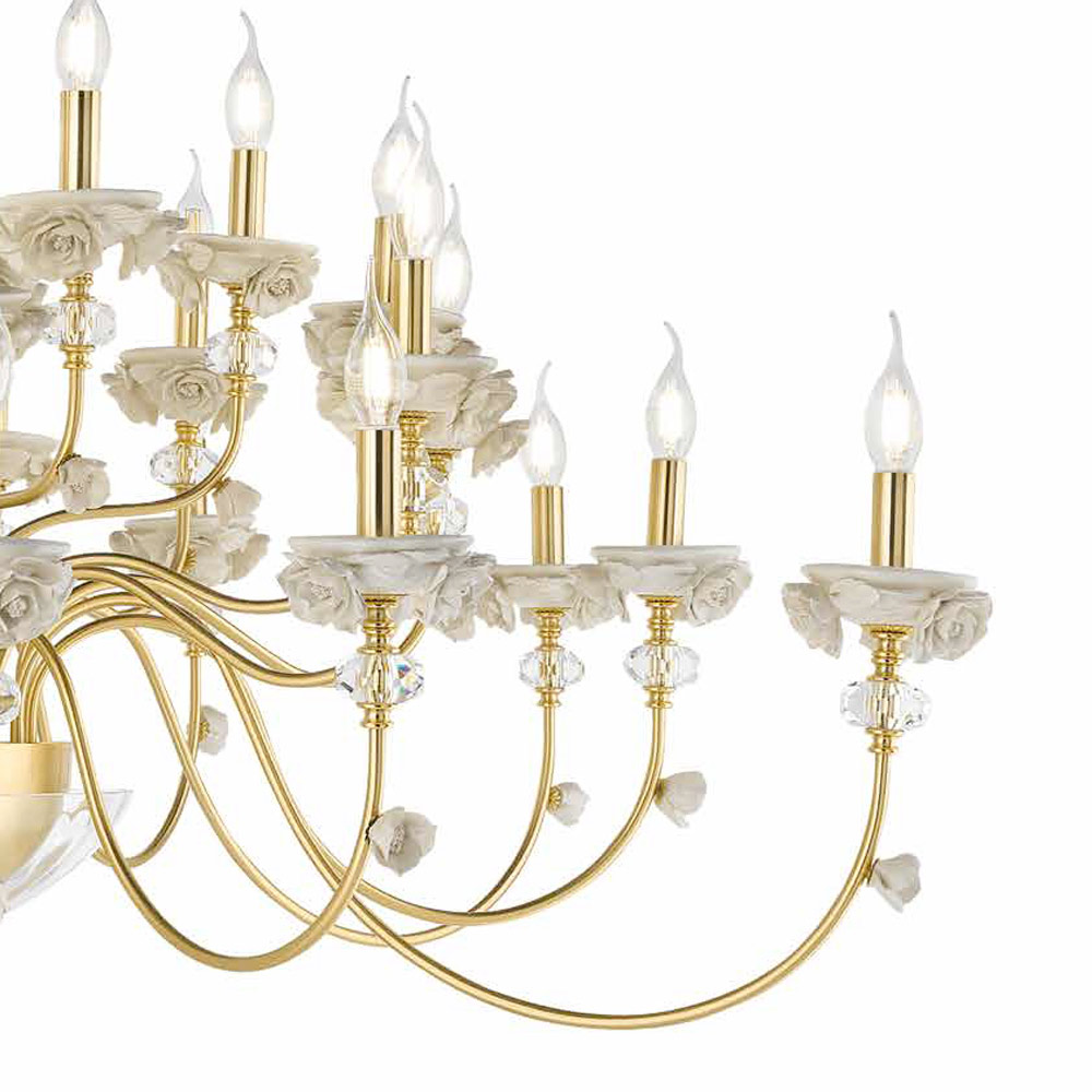 30 lights chandelier in porcelain and blown glass, luxury made in Italy.