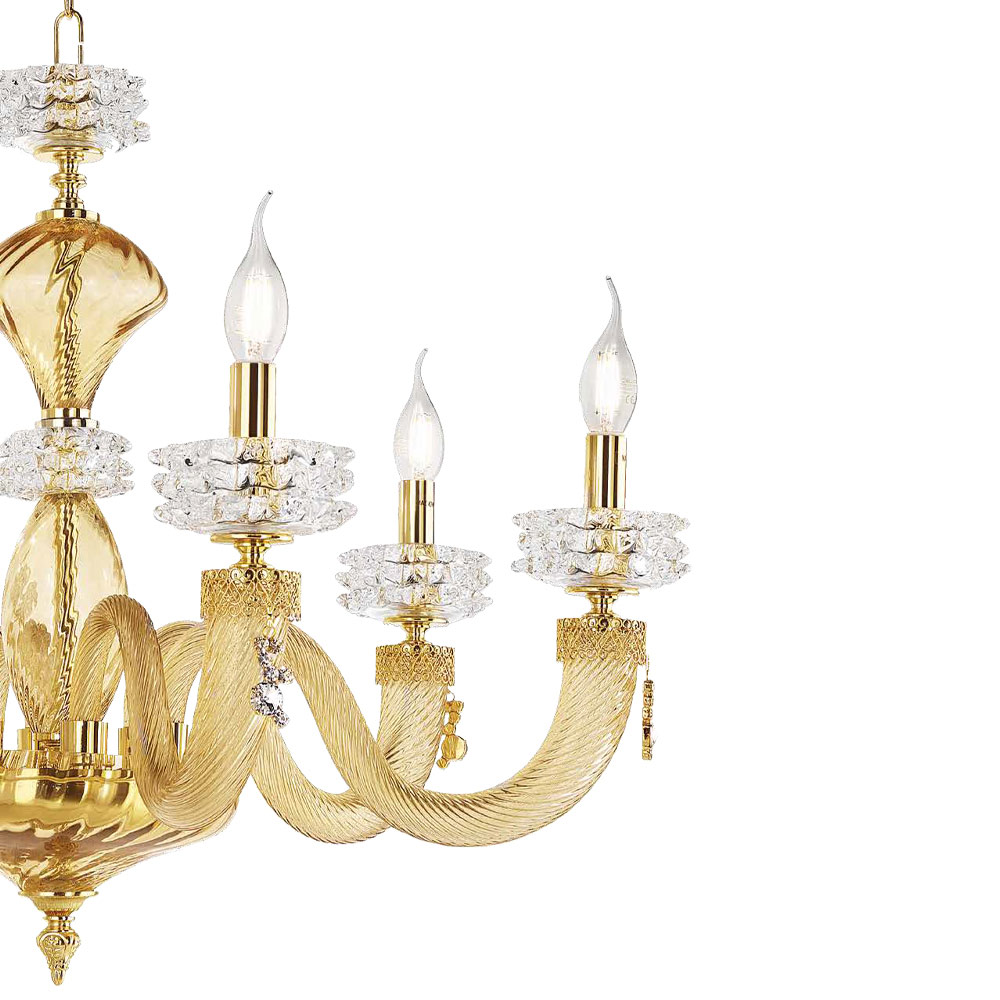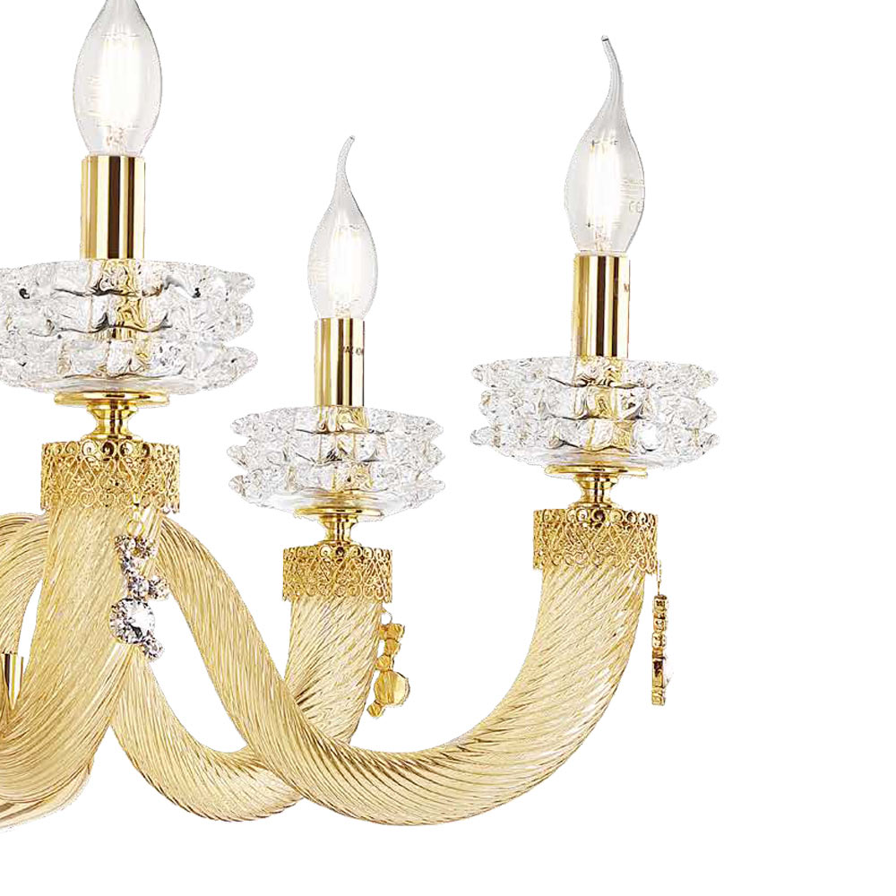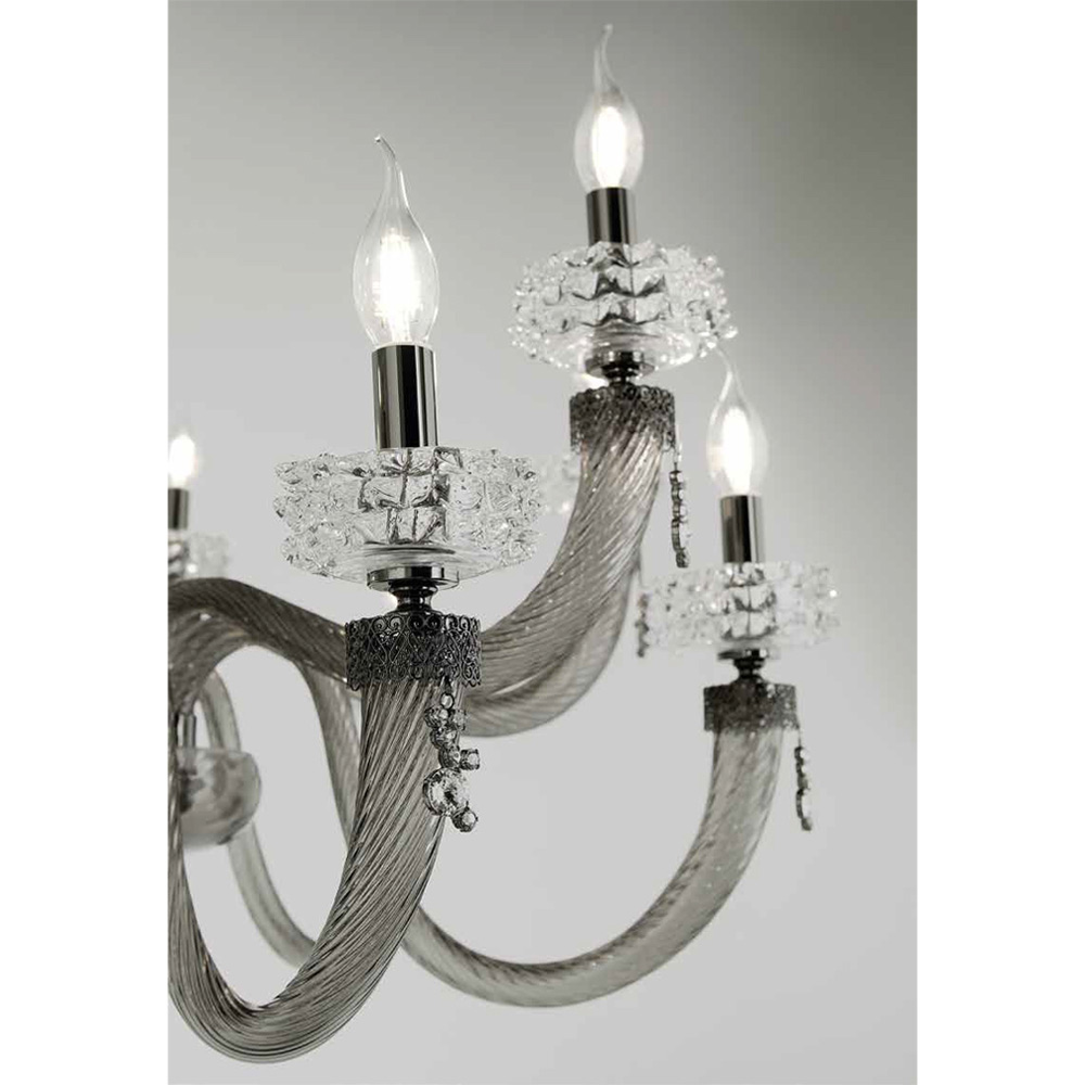 6 lights chandelier in handcrafted glass and metal, Italian luxury design.