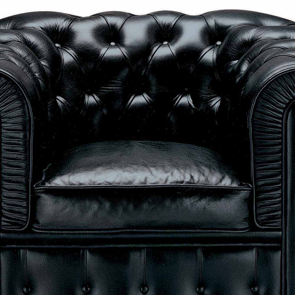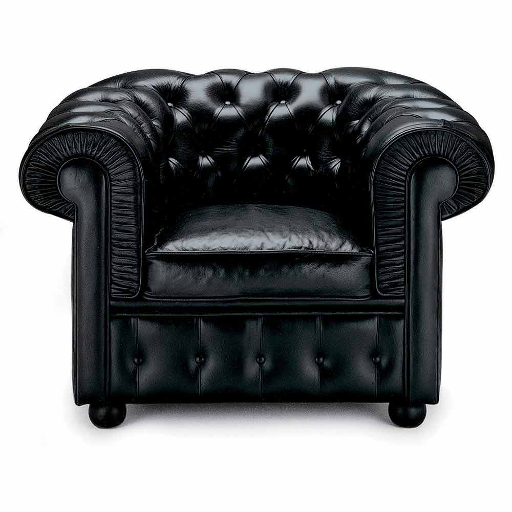 Classic leather armchair with wooden feet made in Italy.