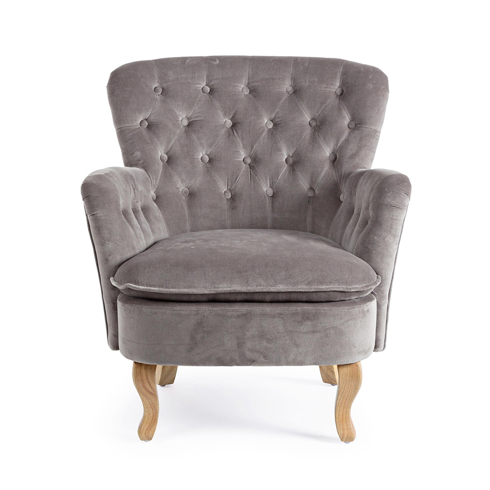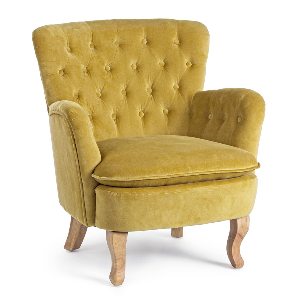 Classic Armchair in Wood and Padded Seat in Quilted Cotton - Monny