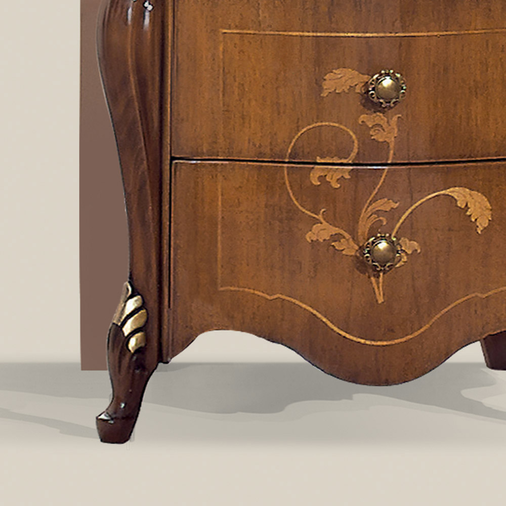 Bedside table for bedroom made of Bassano walnut and antique gold with elegant inlays and 3 practical drawers. Ā  A unique and refined complement, completely made in Italy by skilled master craftsmen , masters of art who finish each complement with wisdom and taste for elegance. The production is carried out using fine materials , and performing the work by hand with the utmost care and professionalism that distinguishes Made in Italy products.
