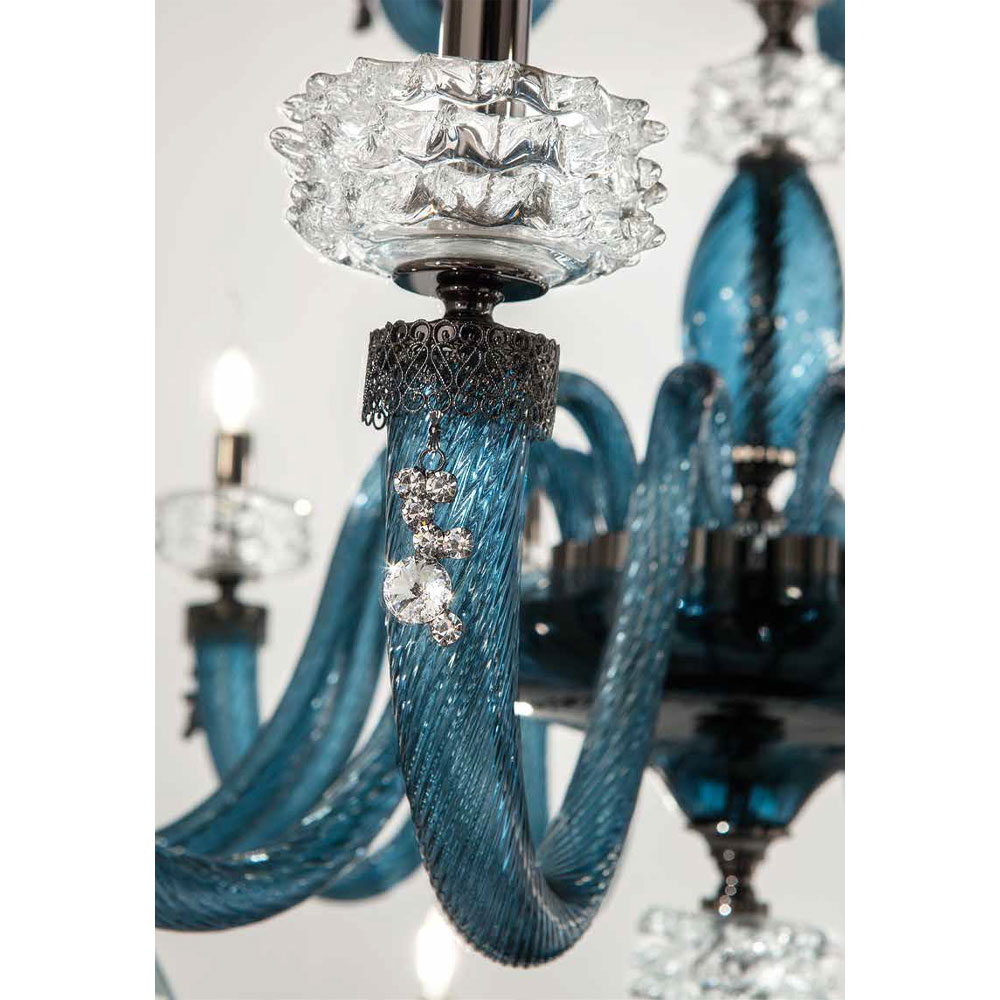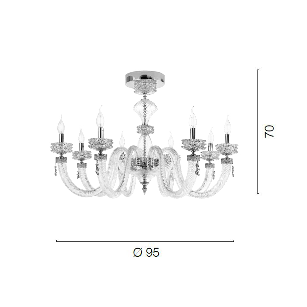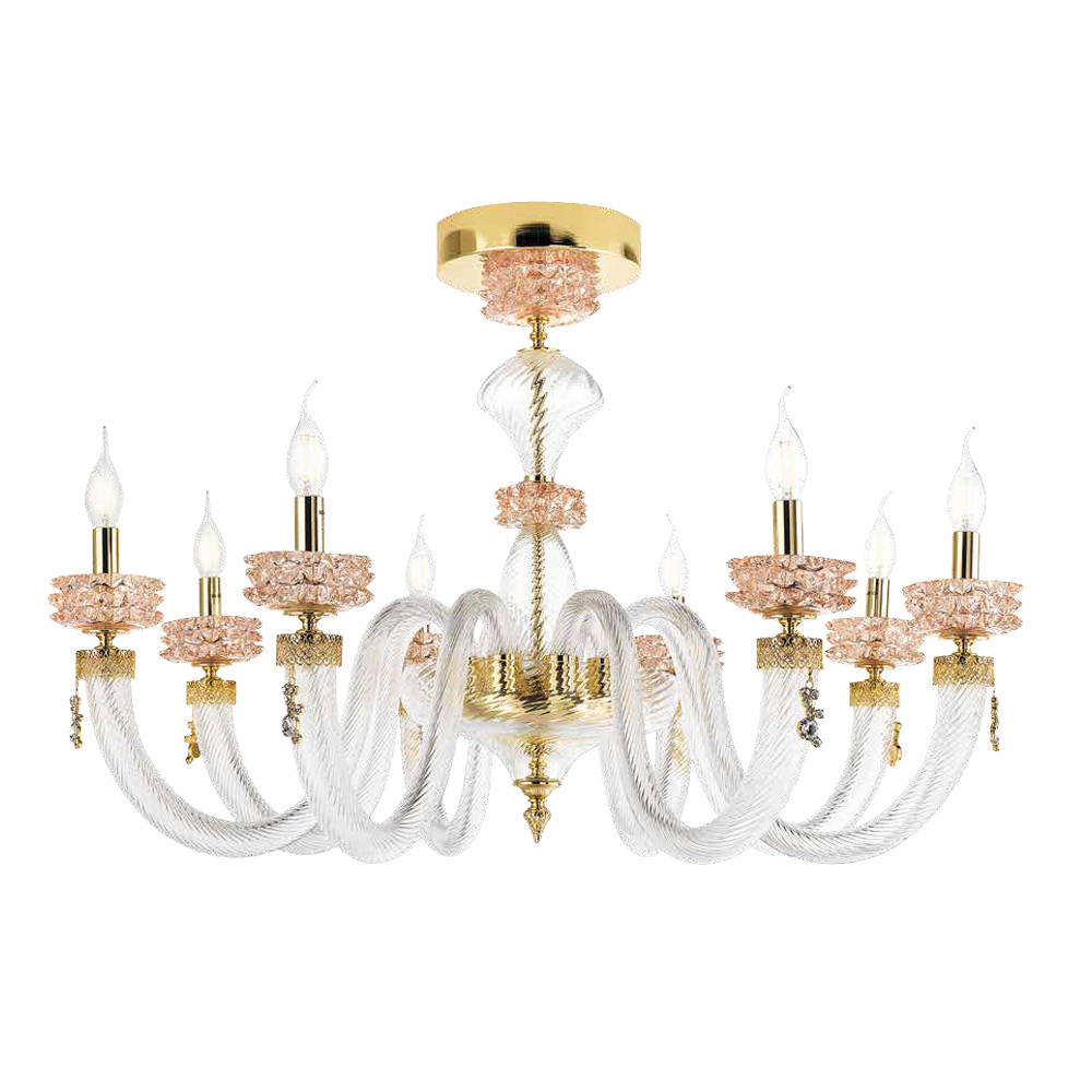 8 lights ceiling lamp in handcrafted glass and metal, Italian luxury design.