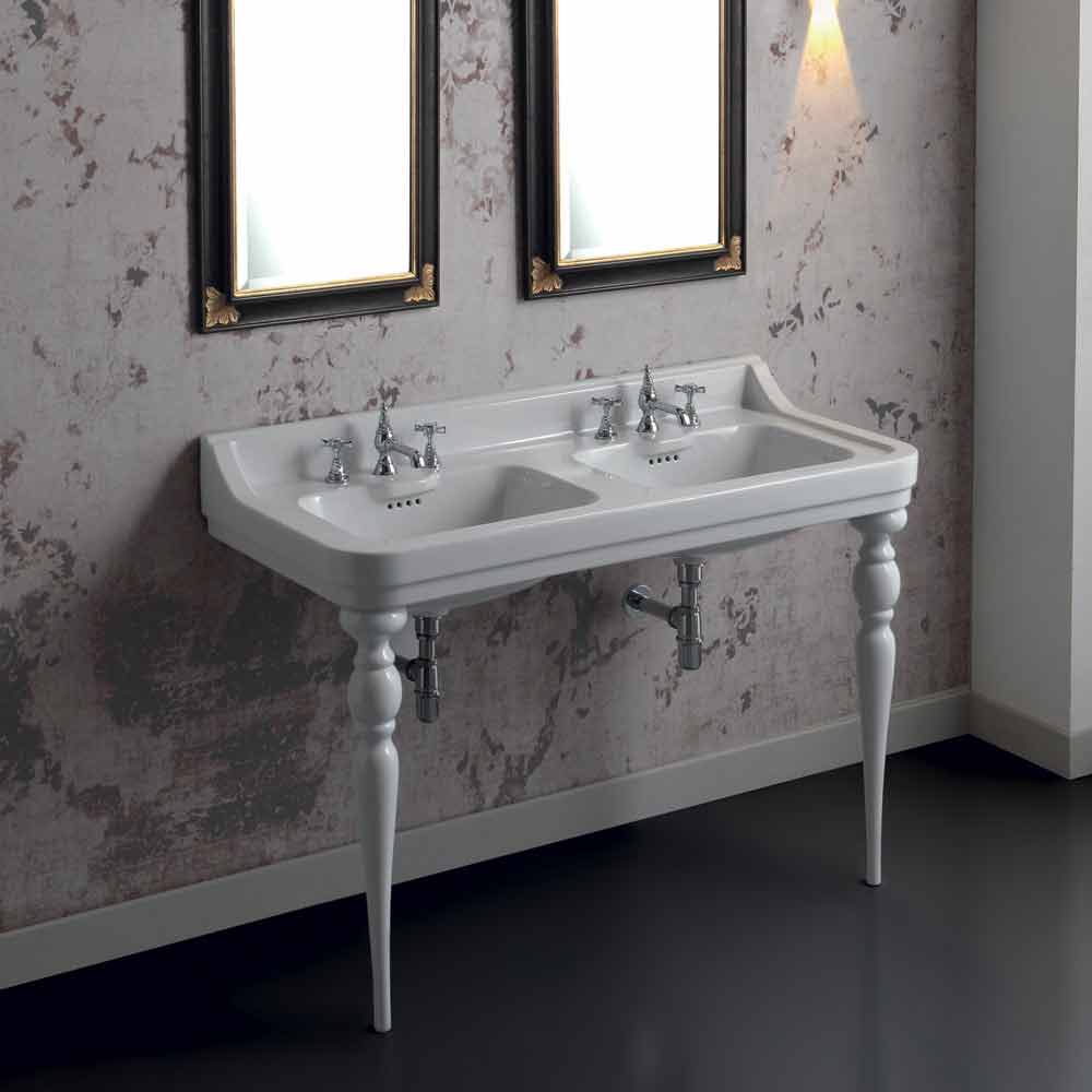 Classic double sink ceramic washbasin, made in Italy, Swami