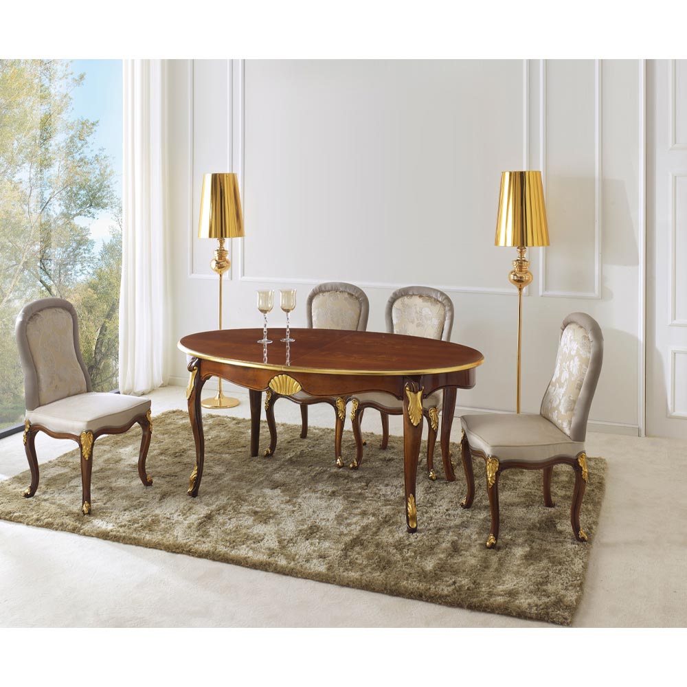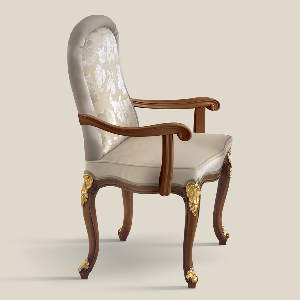 Classic chair in walnut wood and upholstered fabric Made in Italy.