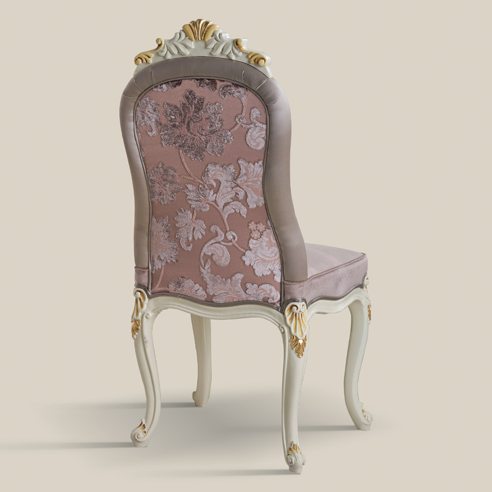 Classic chair in white wood and upholstered fabric Made in Italy.