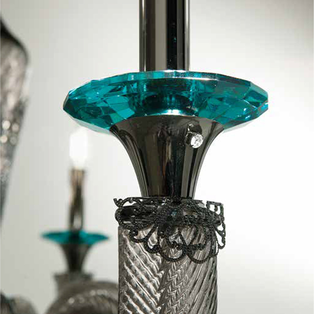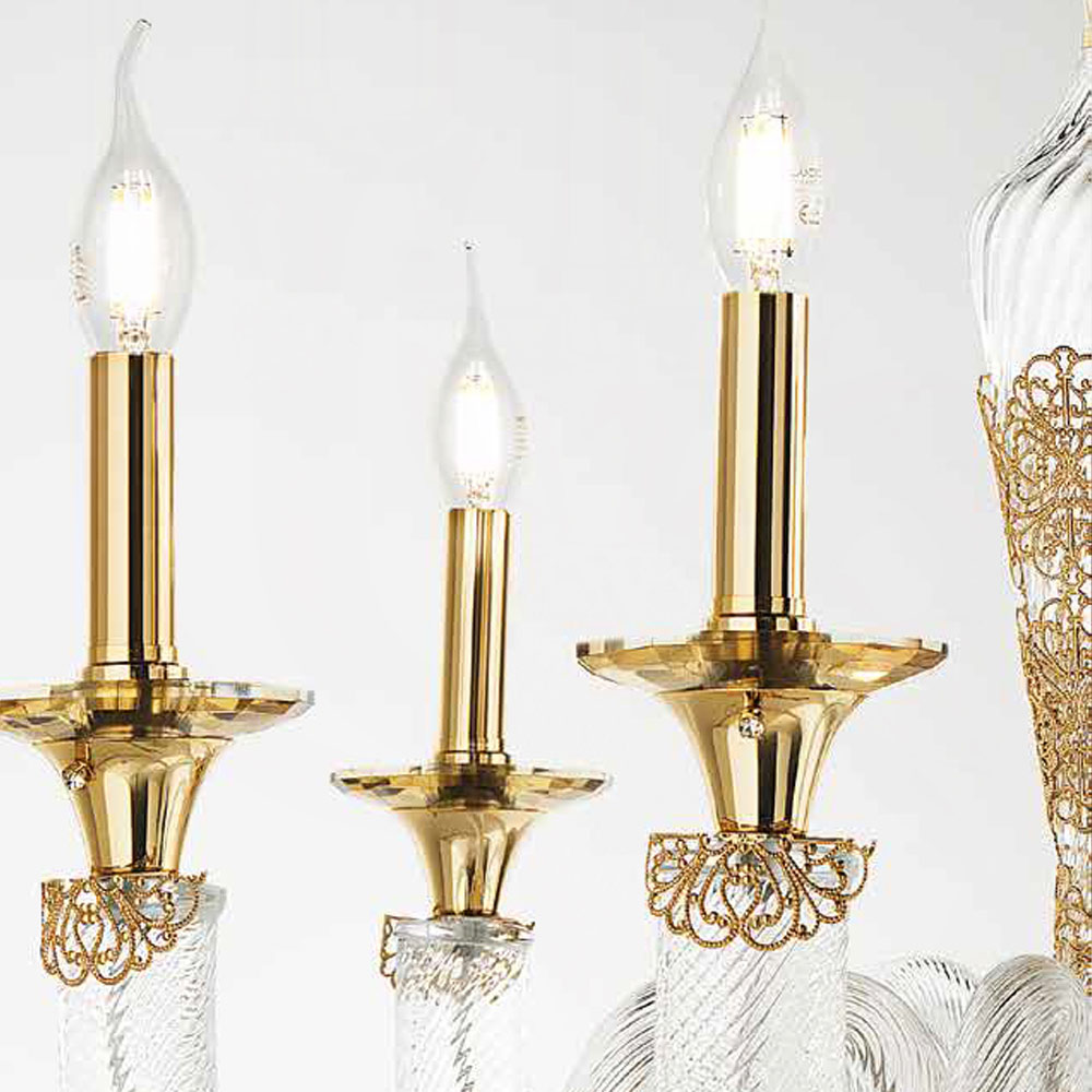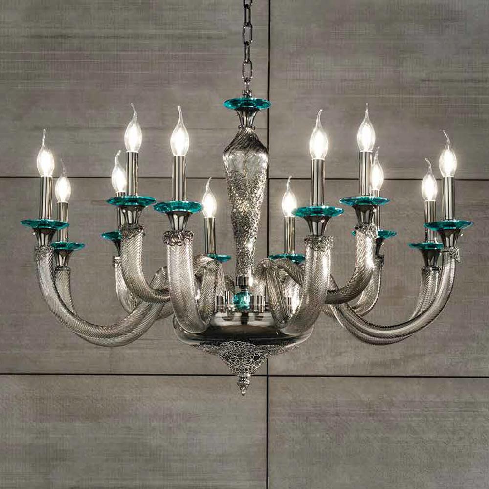 12 lights chandelier in handcrafted glass and crystals, Italian luxury.