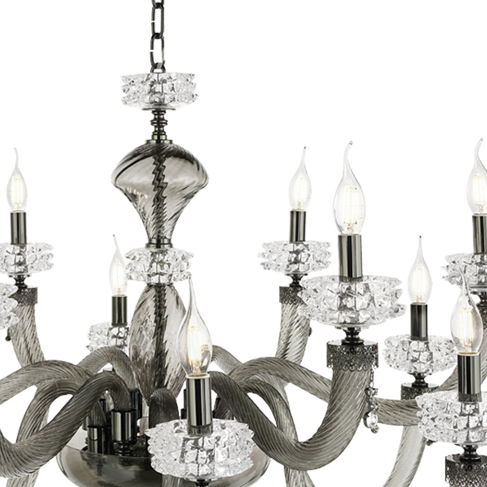 12 lights chandelier in handcrafted glass and metal, Italian luxury design.