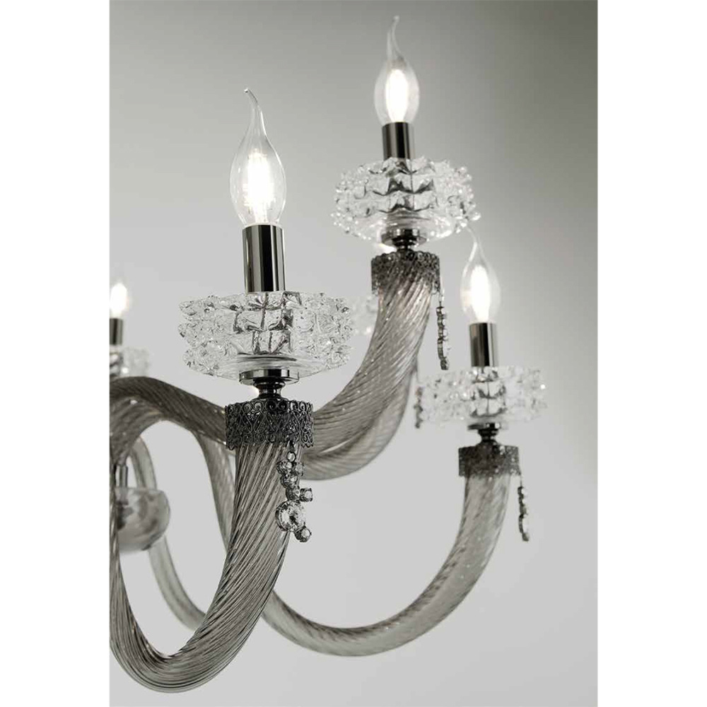 18 lights chandelier in handcrafted glass and metal, Italian luxury design.