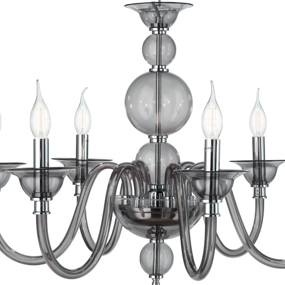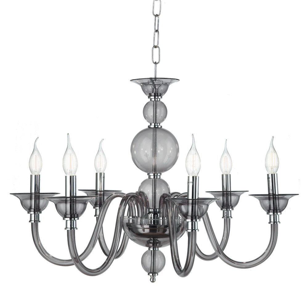 Classic 6-light chandelier in chrome metal and handmade smoked glass, made in Italy.