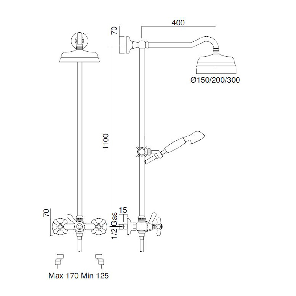 Classic style duplex shower group in handcrafted brass made in Italy.