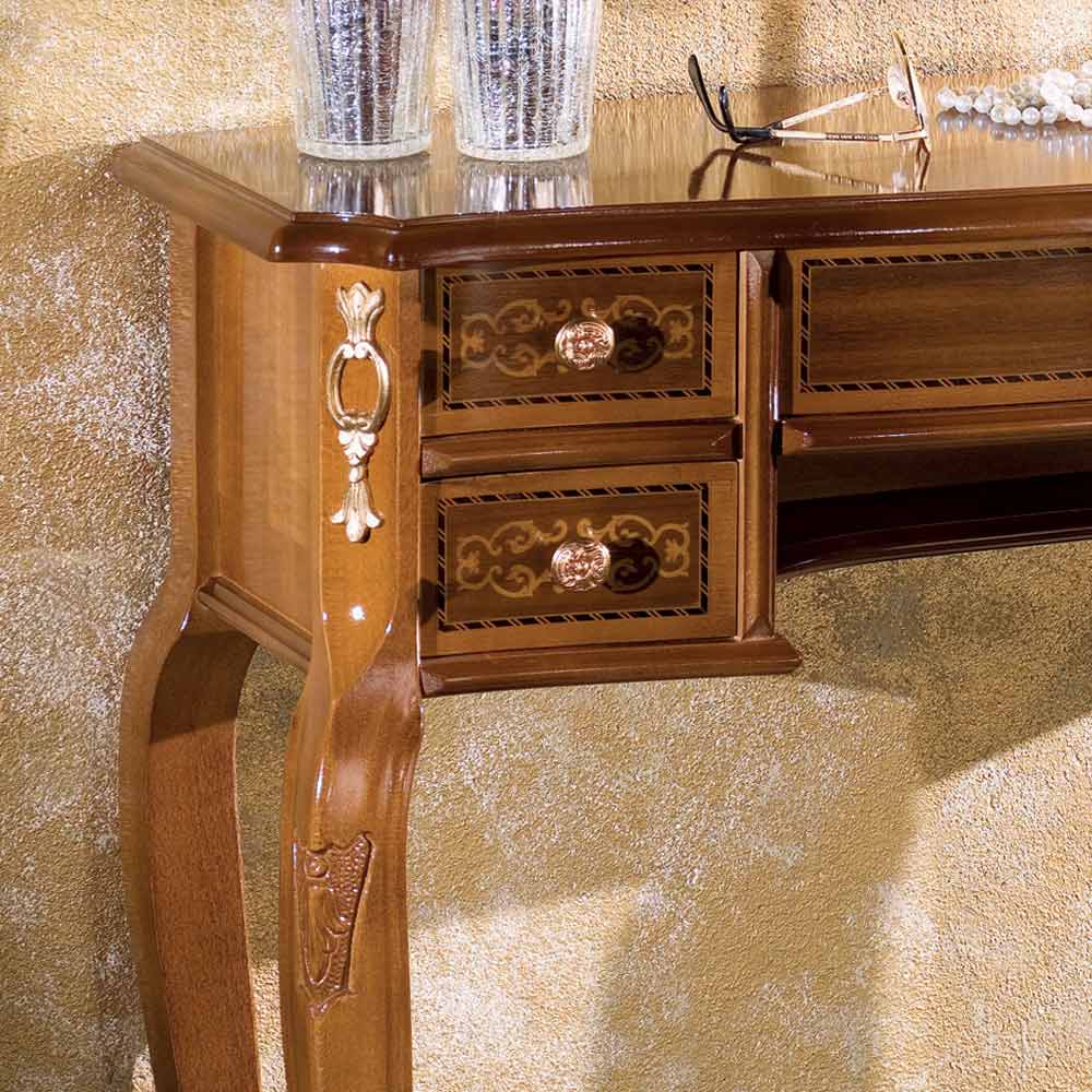 Classic entrance console in wood with 5 drawers Made in Italy.
