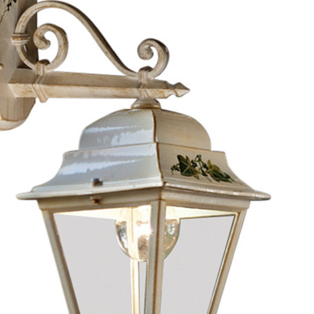 This outdoor wall lamp is entirely made of white aluminum decorated with hand-painted ivy for a classic and harmonious style between shape and colours.