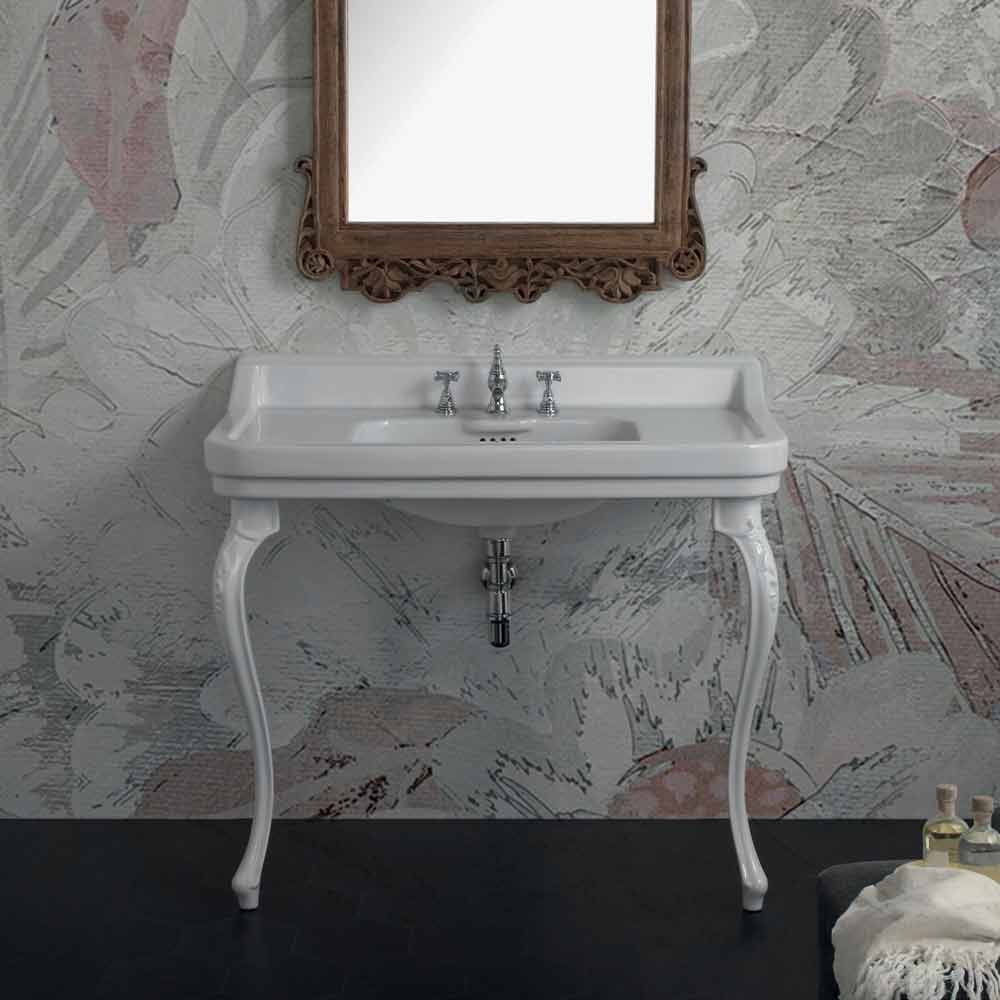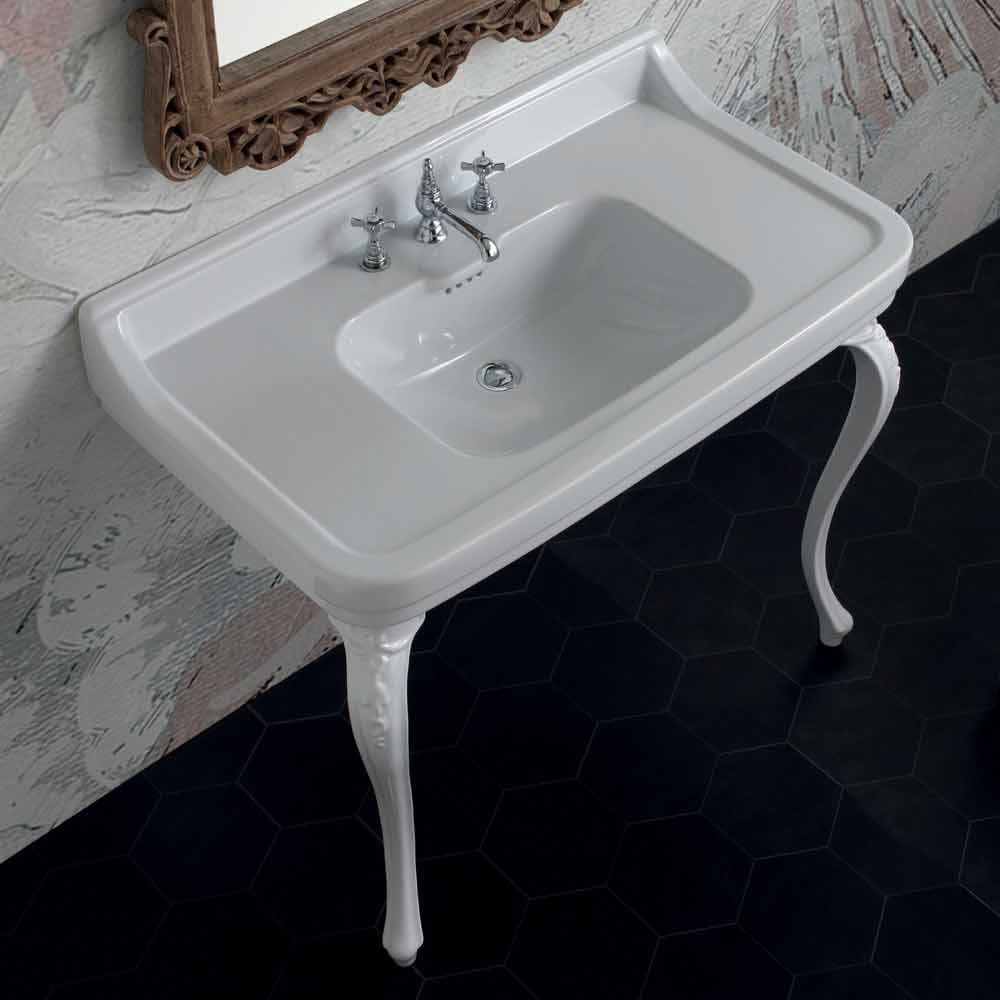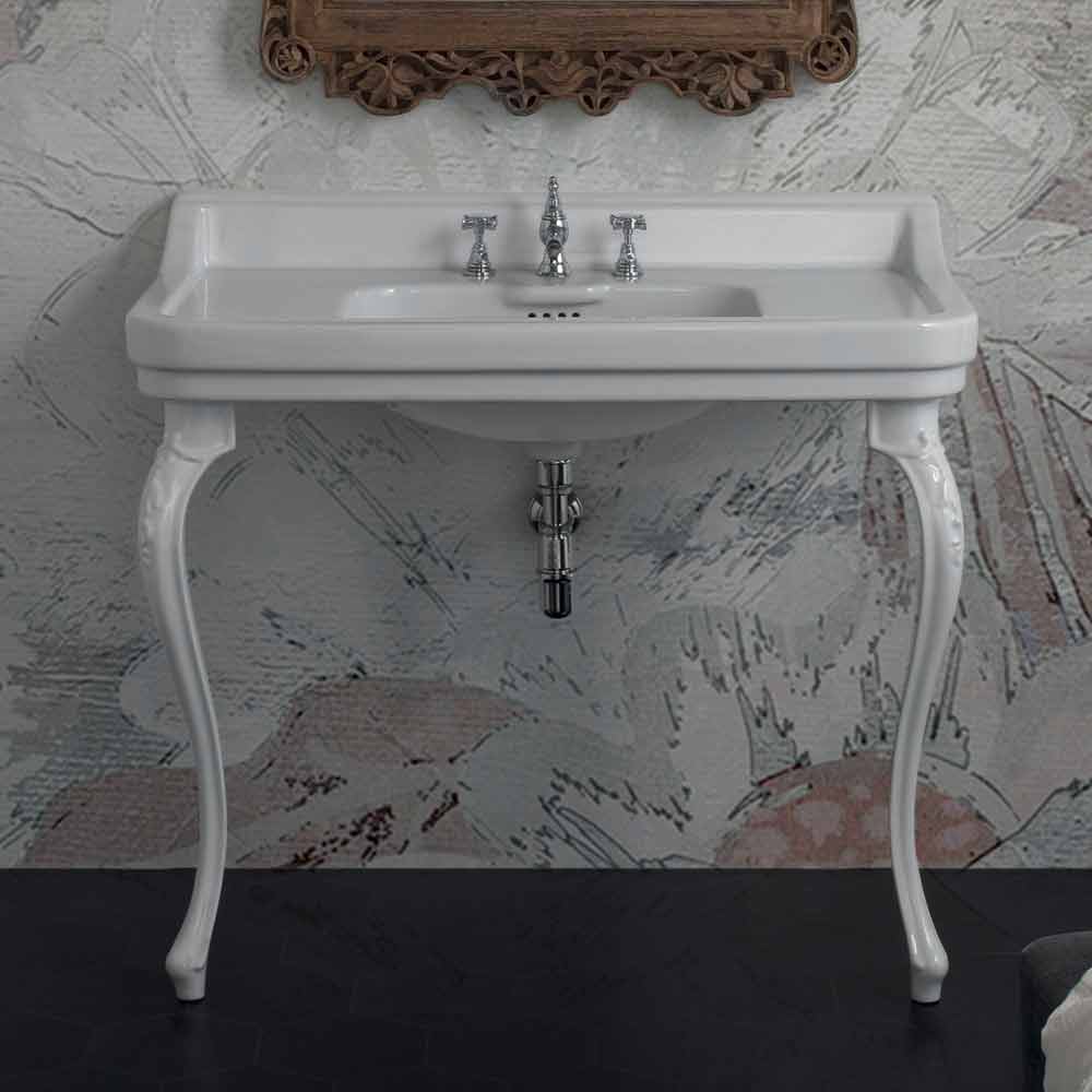 Console washbasin of classic design in ceramic made in Italy, Swami