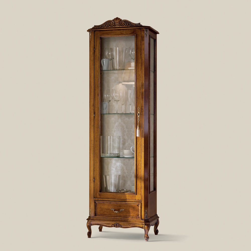 Classic lounge display cabinet in walnut wood with 1 door Made in Italy.