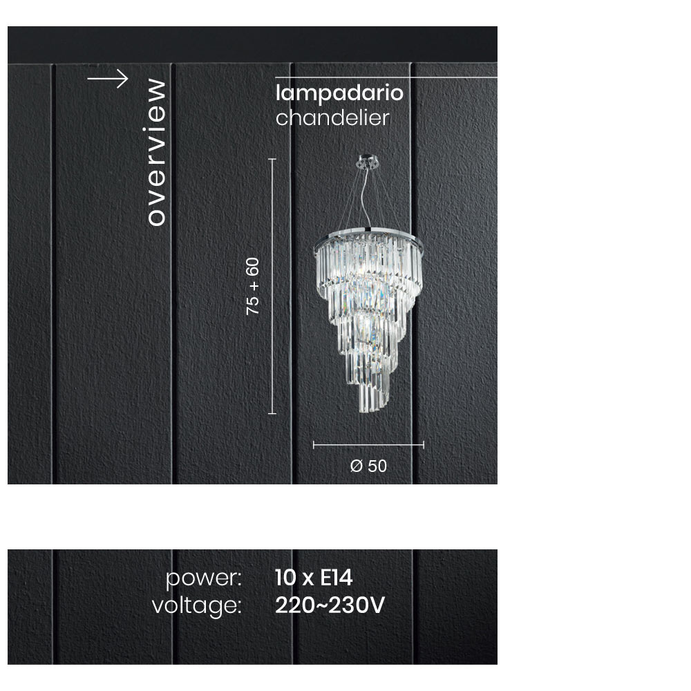 This chandelier for the living room with 7 or 10 lights is able to create luxurious and important atmospheres thanks to its precious and bright design.