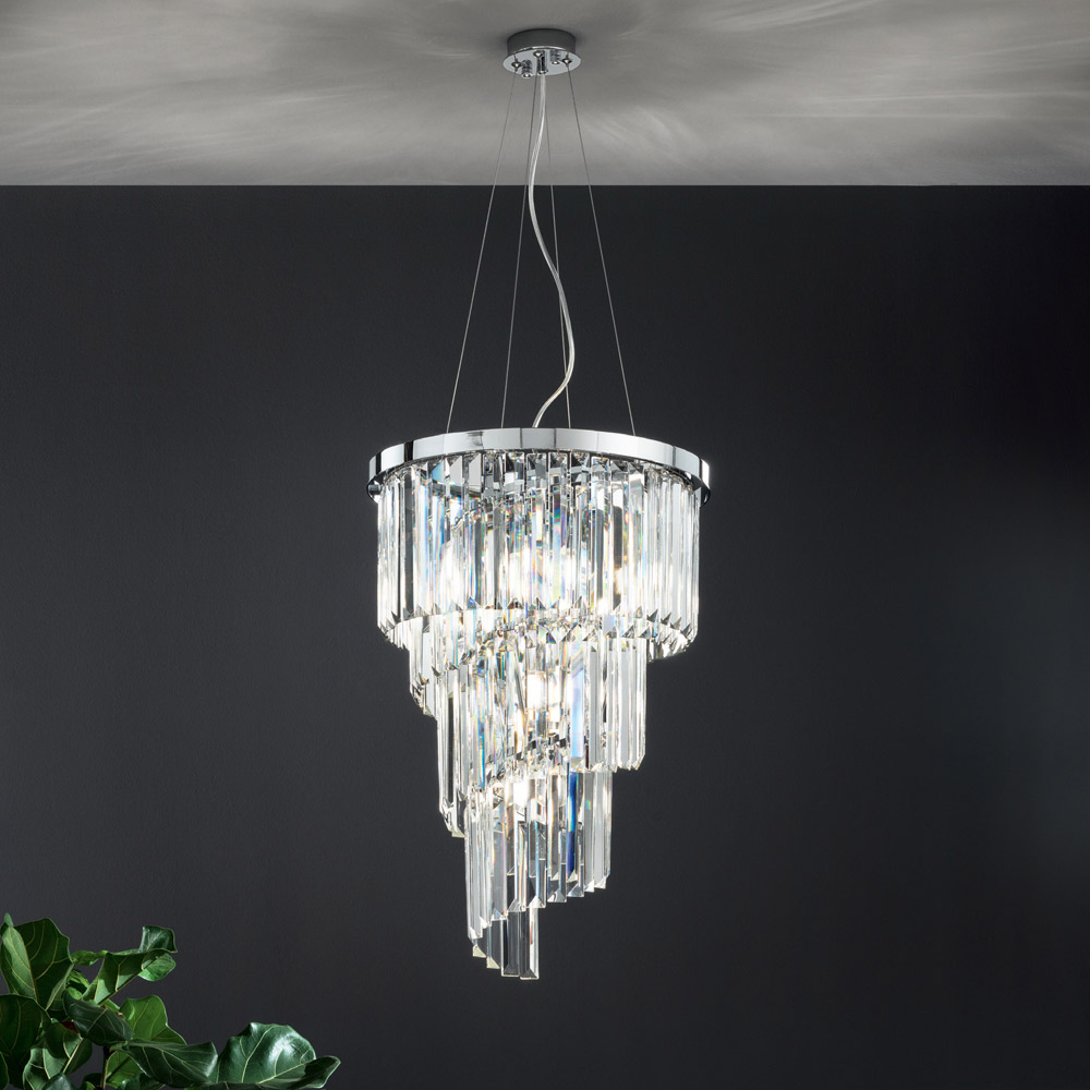 Its real strong point consists in the decorative elements in cut crystal that decorate, illuminating every room with taste and character, in a mix of style, class and innovation.