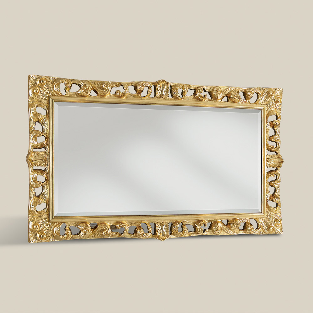Classic rectangular mirror with wooden frame decorated in gold leaf . With its elegant and harmonious shapes , it is ideal for giving any environment a classic and luxury touch.