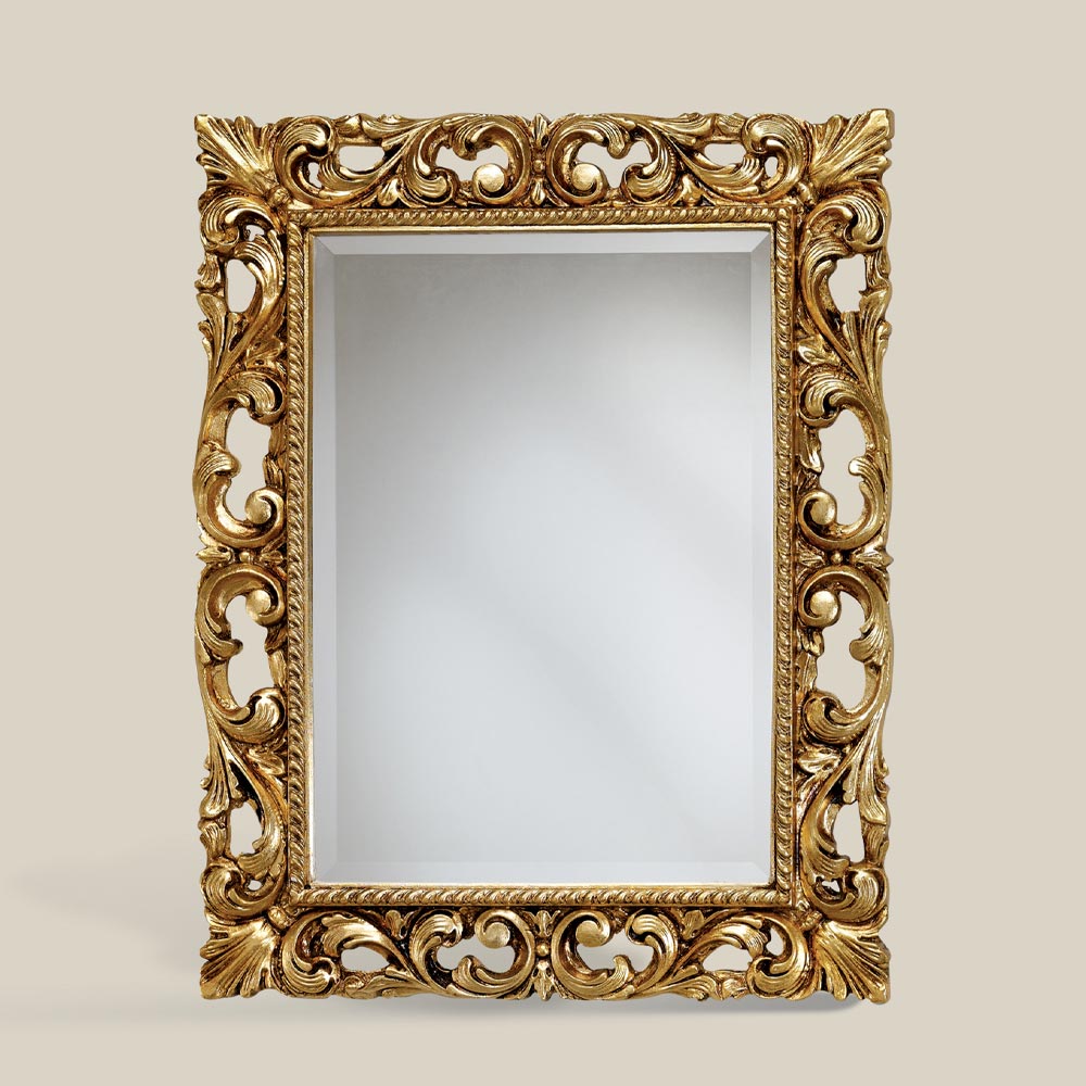 Elegant classic style mirror with rectangular frame finished in gold leaf , designed to furnish any environment with personality and originality. A unique and refined complement, completely made in Italy and handcrafted by skilled master craftsmen , masters of art who finish each complement with wisdom and taste for elegance. The production is carried out using fine materials , and performing the work by hand with the utmost care and professionalism that distinguishes Made in Italy products.