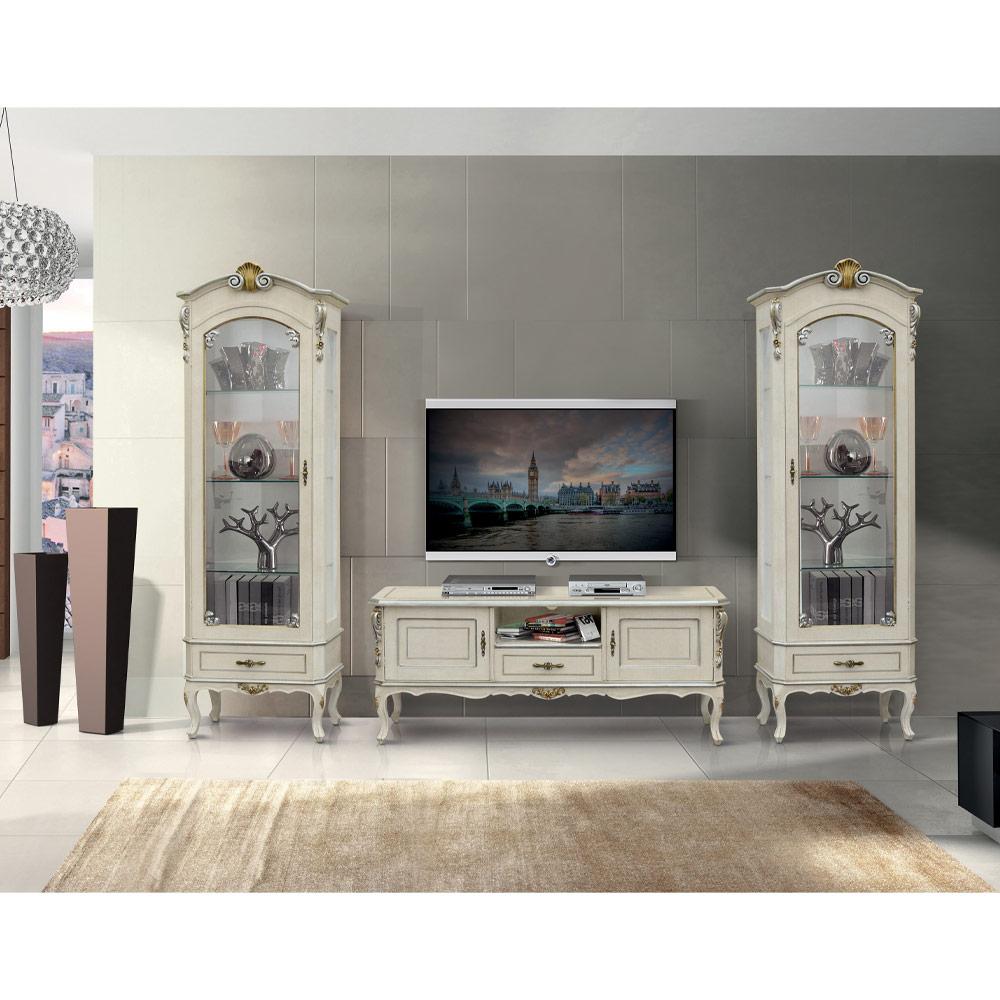 Classic Showcase with Door and White Wooden Drawer Made in Italy - Cheverny
