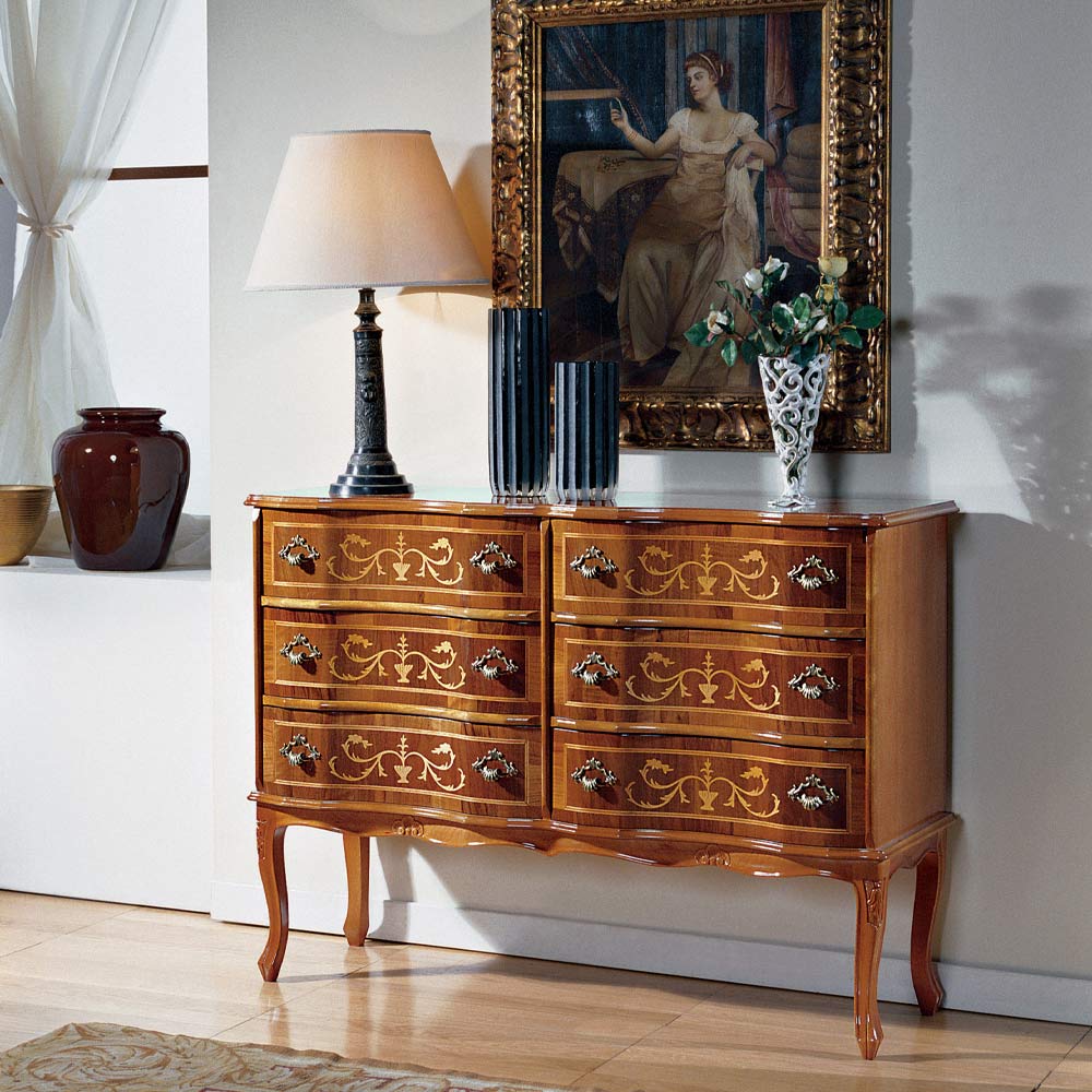 Classic style chest of drawers in wood with 6 drawers Made in Italy.