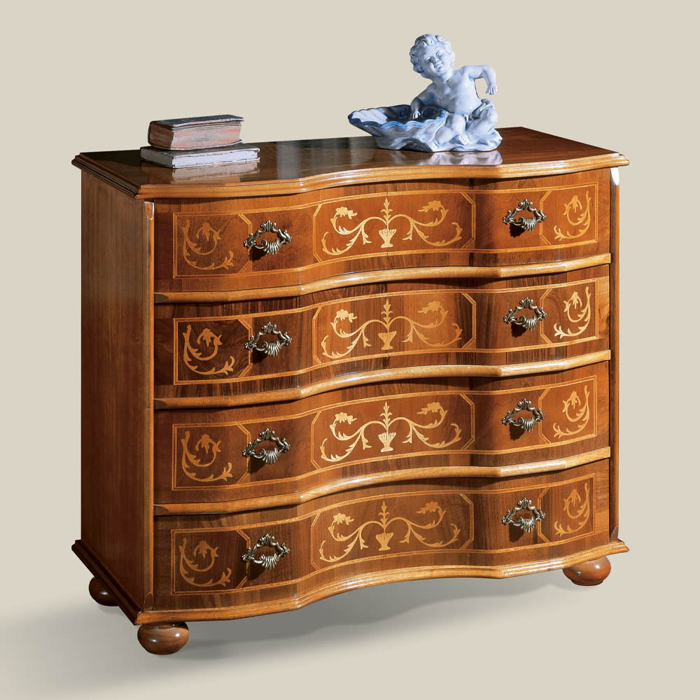 Classic style chest of drawers in wood with 4 or 5 drawers Made in Italy.