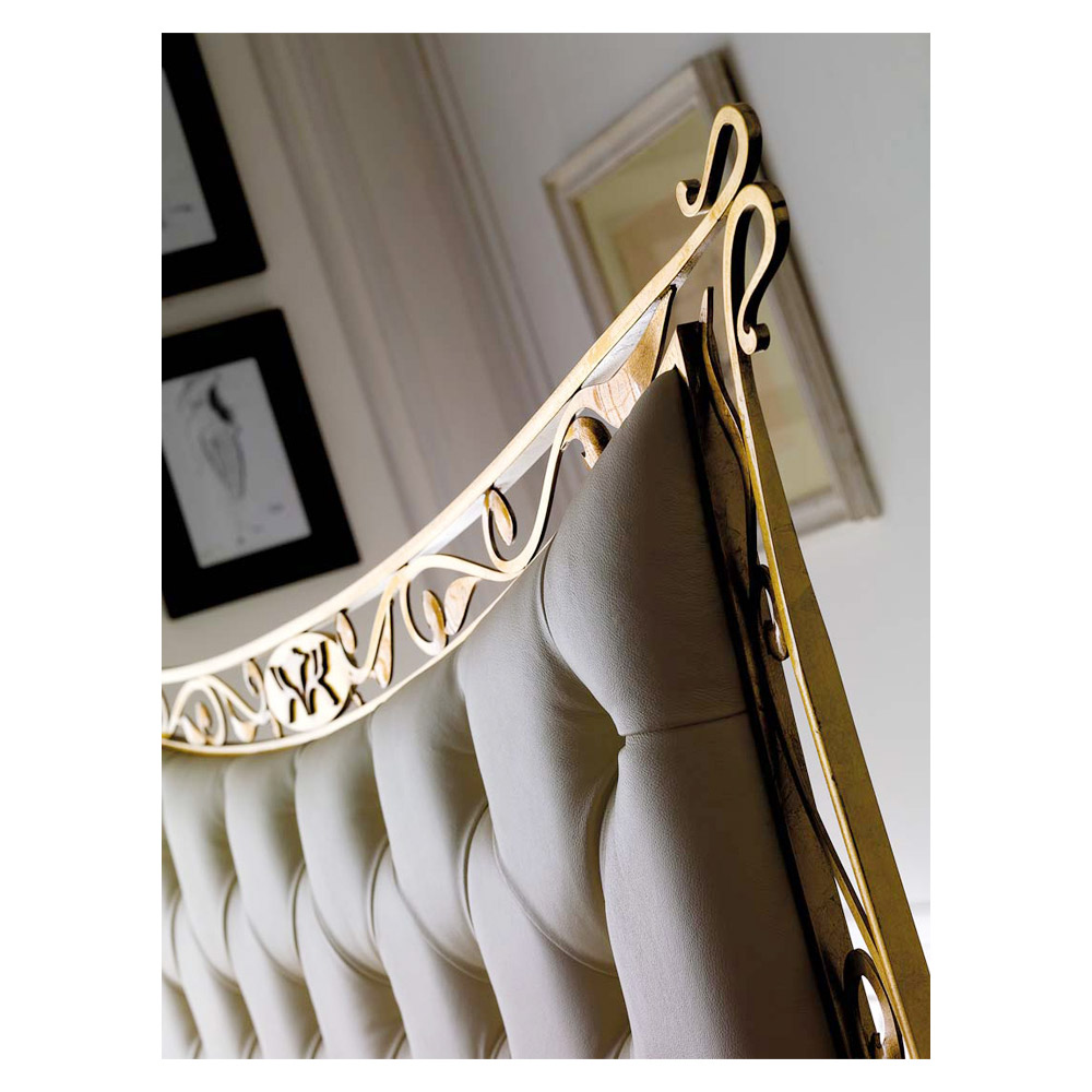 real leather padding in snow white finish. This product with a classic and timeless style has a great visual and scenographic impact. Thanks to these characteristics it manages to create a unique and evocative atmosphere in the bedroom. The comfort and convenience of this structure are guaranteed by the excellent quality of the materials used for its construction.