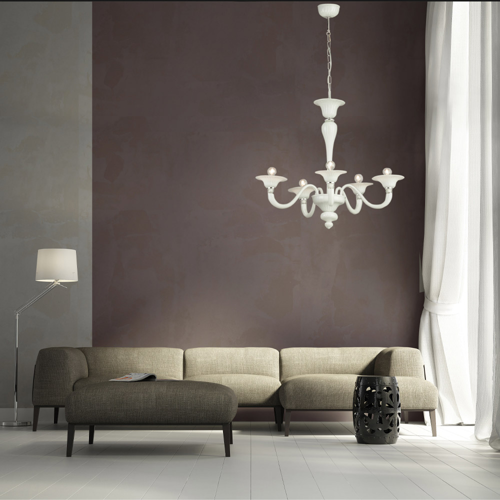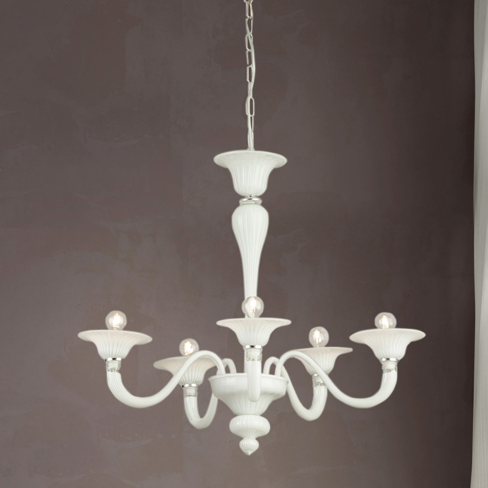 Classic hand blown white Venice glass chandelier.
