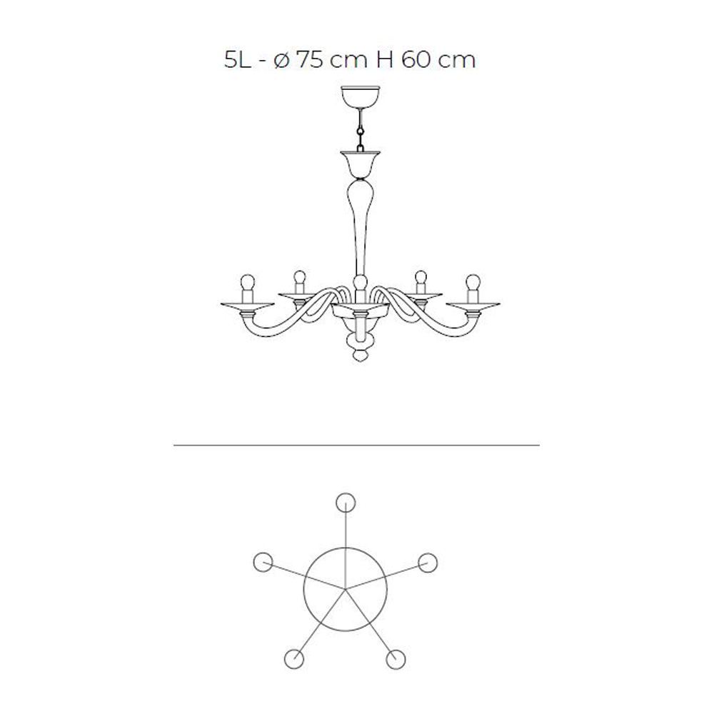 - 5 lights - diameter 75 x H 60 cm (5x E14 Max 40W);