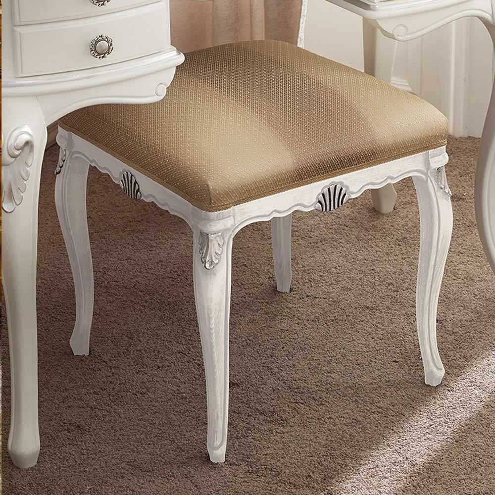 Classic style pouf made of wood, padded and covered in fabric , available in Bassano walnut wood finishes with antique gold details or white wood and silver details.