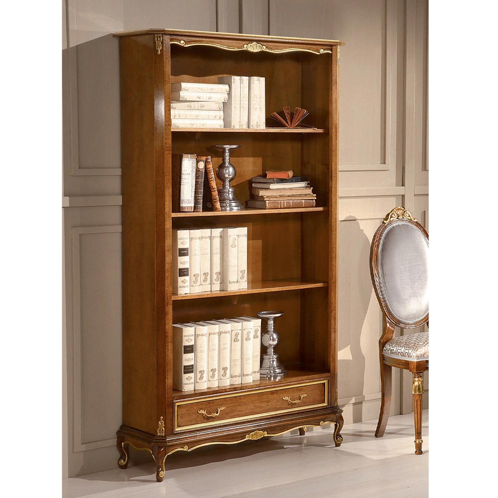 This classic style bookcase is suitable for elegantly fitting into any environment, making it sophisticated and effective. It is made of Bassano walnut wood with elegant antique gold details and has a practical drawer and 3 shelves. Completely made in Italy by skilled master craftsmen , finished with wisdom and taste for elegance. The production is carried out using fine materials , and performing the work by hand with the utmost care and professionalism that distinguishes Made in Italy products.
