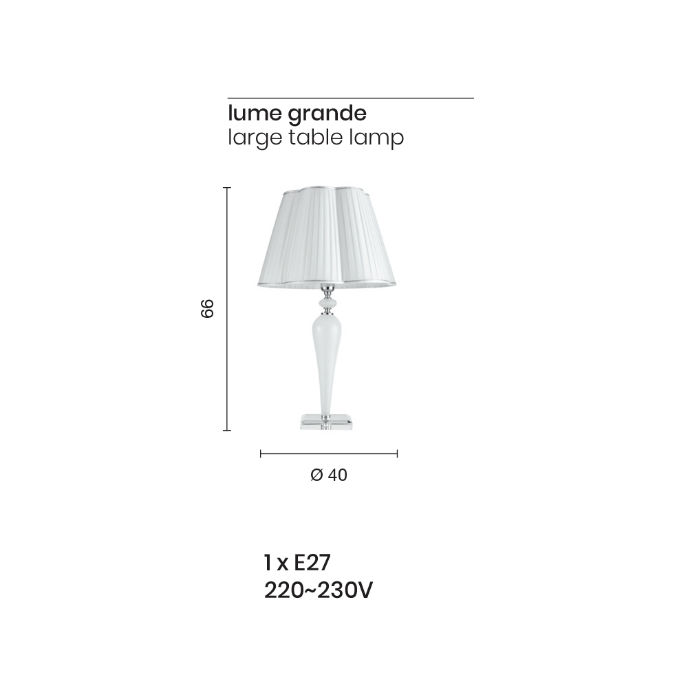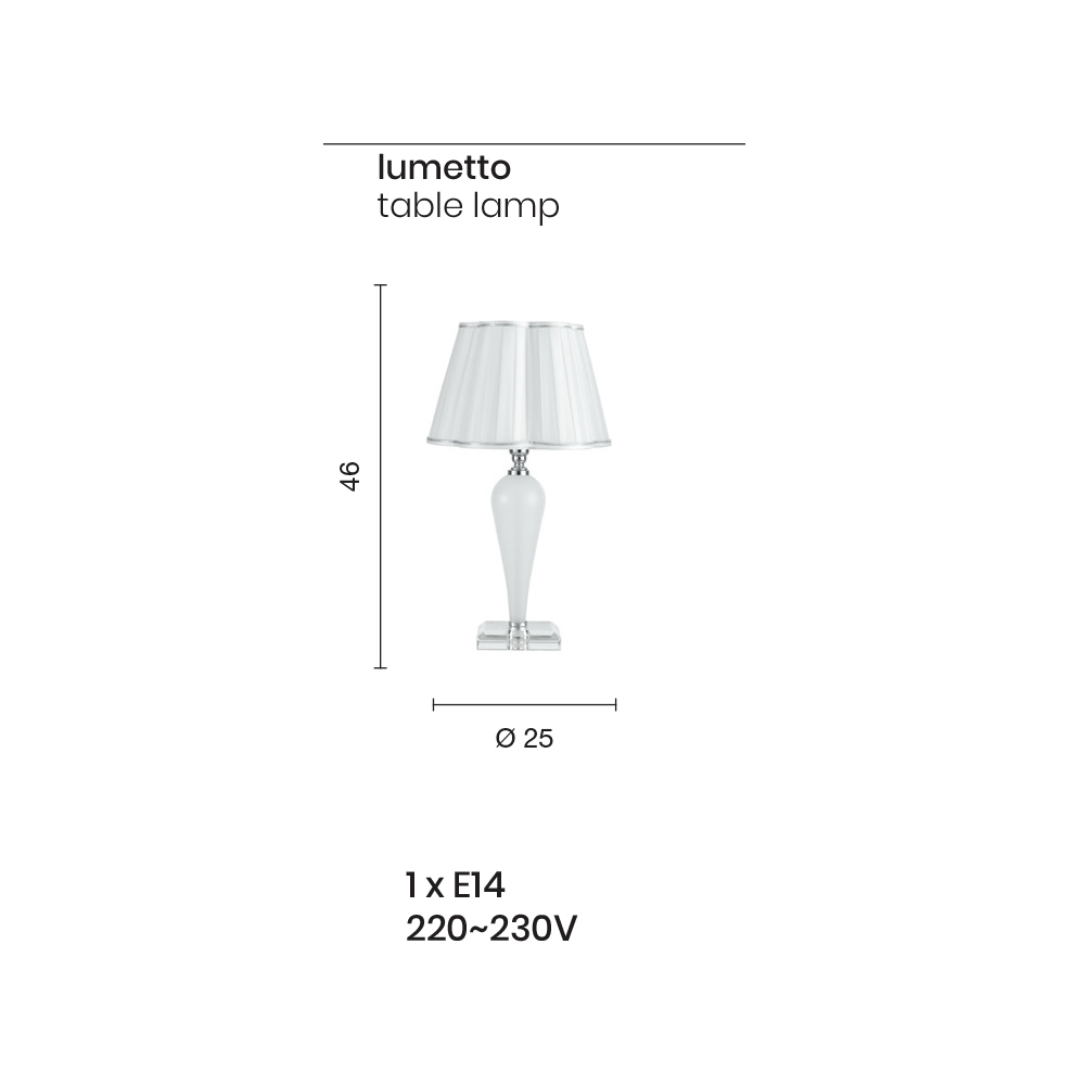 Metal table lamp, handmade glass and lampshade made in Italy.