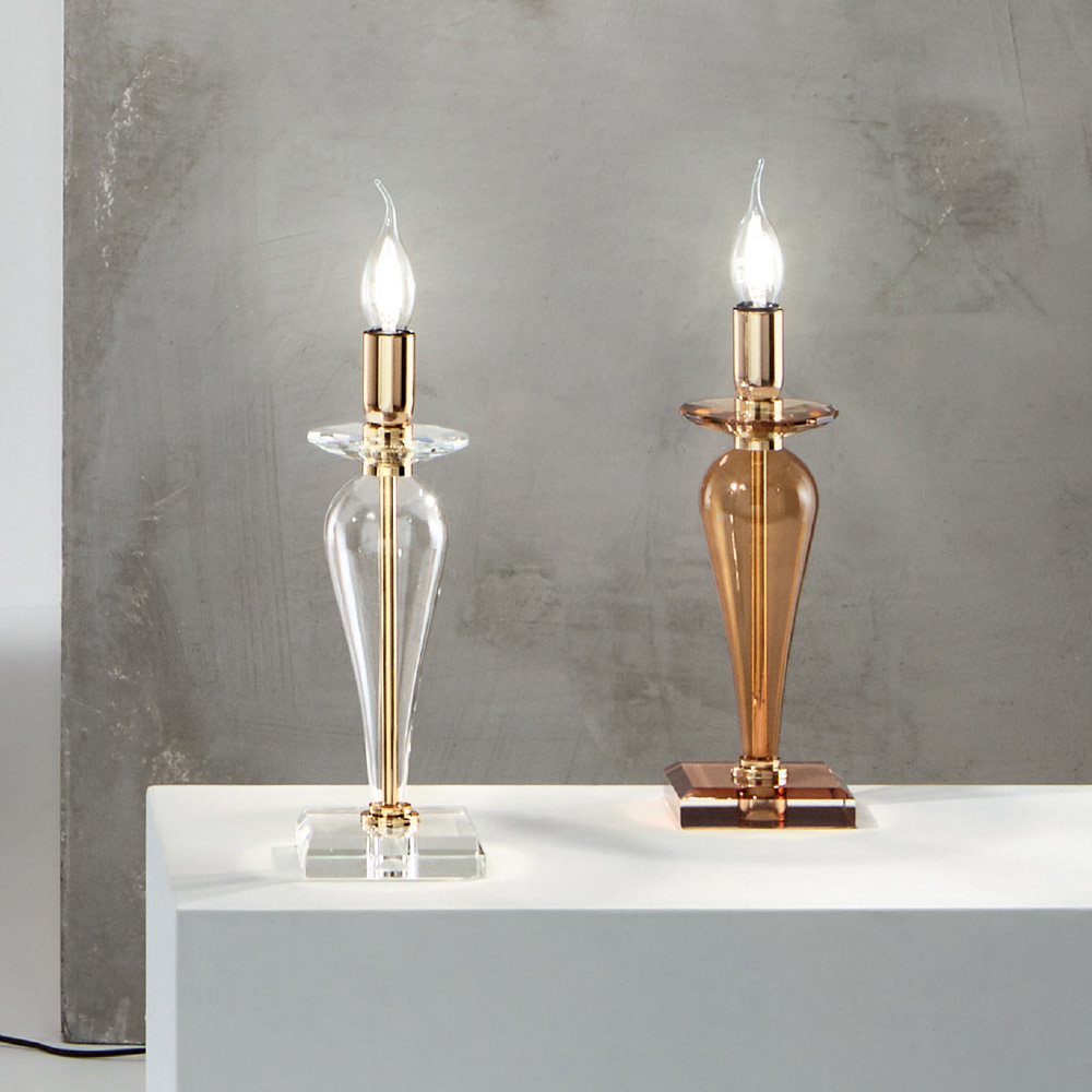 This table lamp is made with a square-shaped base and a wavy body with a transparent glass saucer handmade in Italy.
