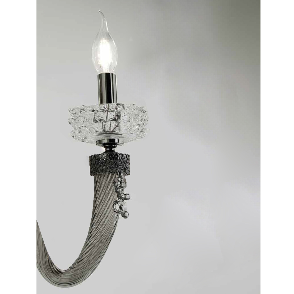 2 lights wall lamp in handcrafted glass and metal, Italian luxury design.