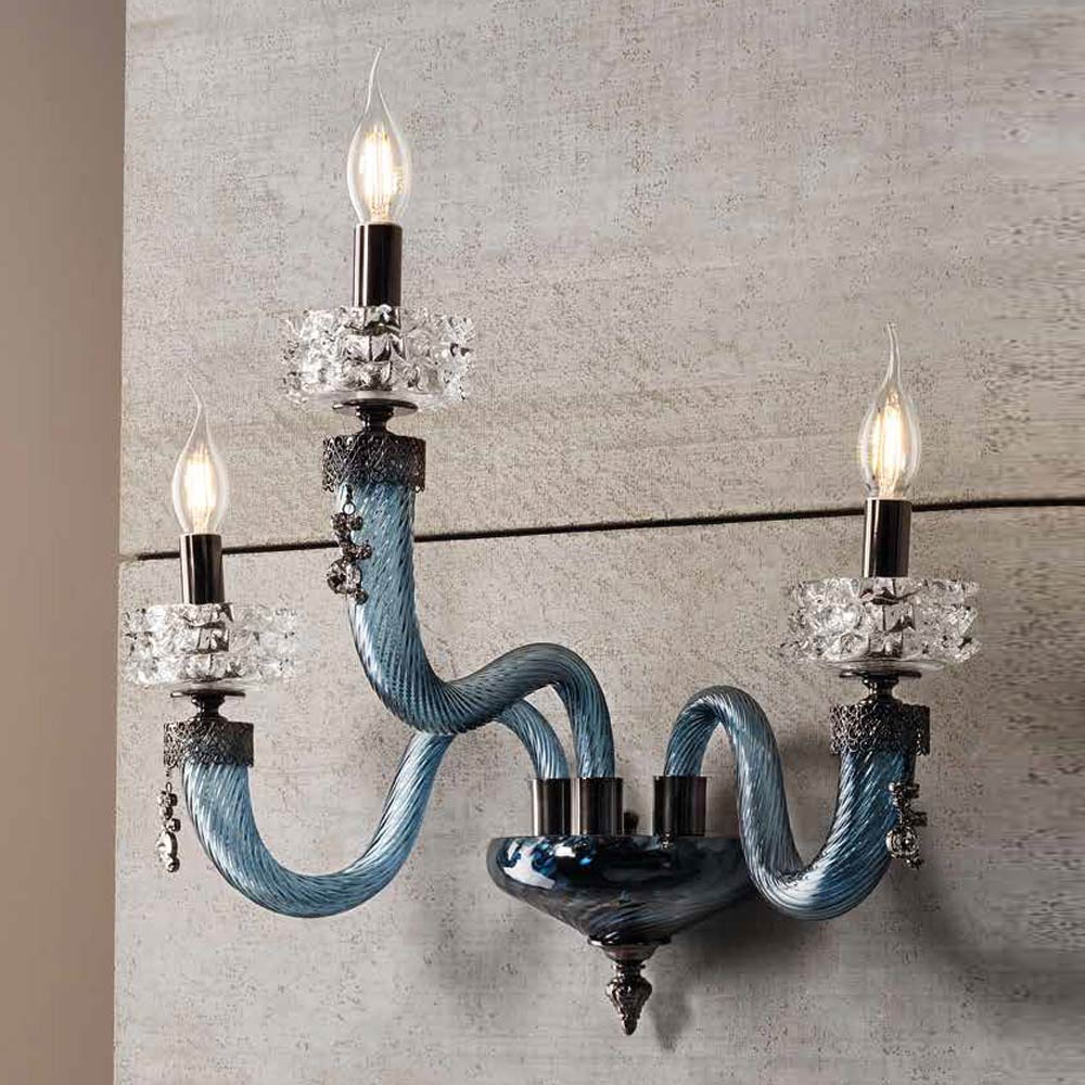 Classic Wall Lamp 3 Lights Handcrafted Luxury Glass Made in Italy - Saline