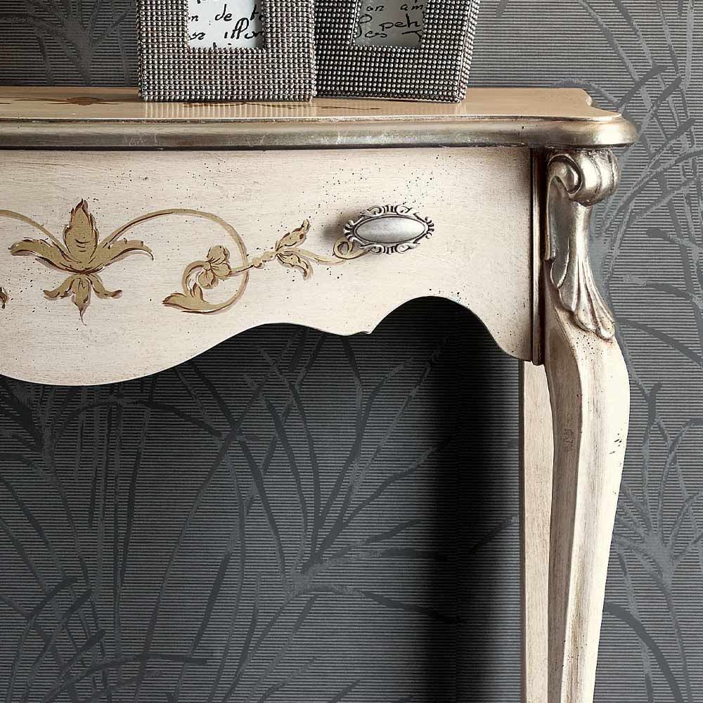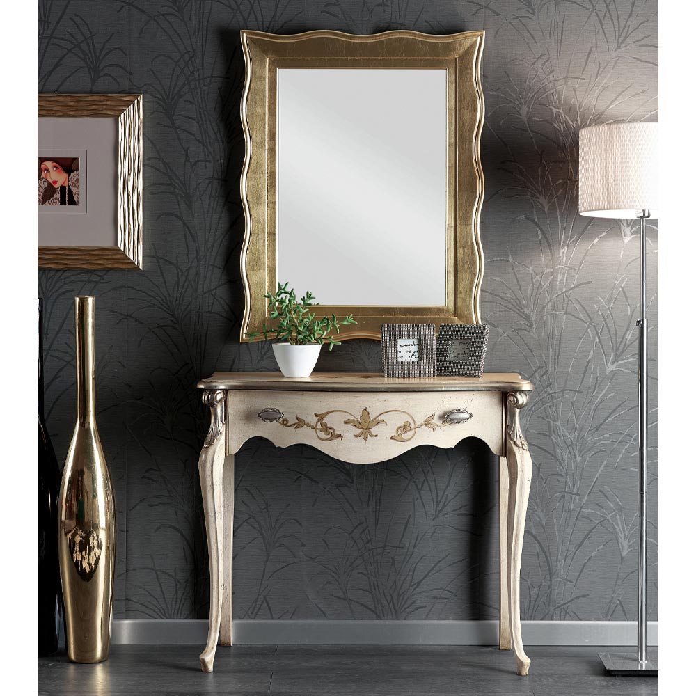 Classic style hall console made of wood complete with practical and spacious drawer available in Bassano walnut, antique white and black and silver finishes. A unique and refined complement, completely made in Italy by skilled master craftsmen , masters of art who finish each complement with wisdom and taste for elegance. The production is carried out using fine materials , and performing the work by hand with the utmost care and professionalism that distinguishes Made in Italy products.