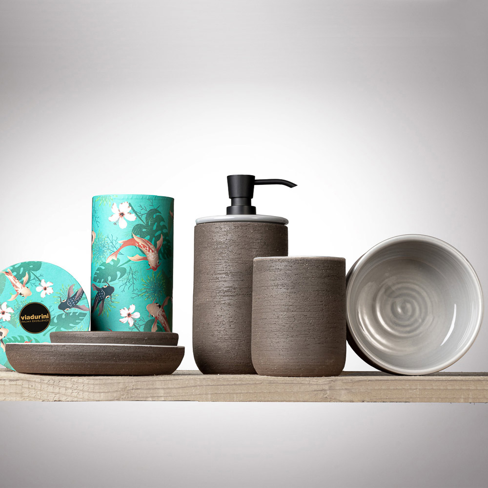 Bathroom accessories in refractory clay with grey interior Made in Italy.