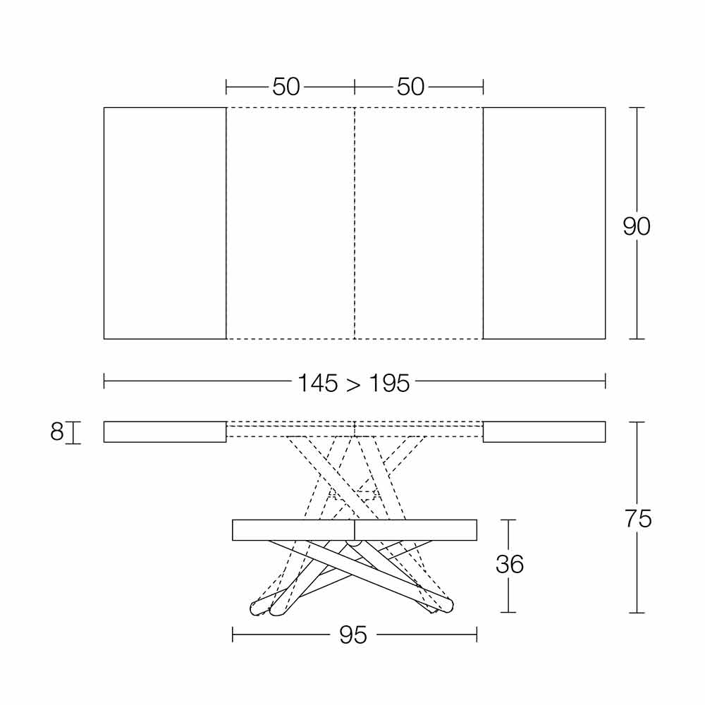 Modern design convertible coffee table with melamine top and metal base Made in Italy.
