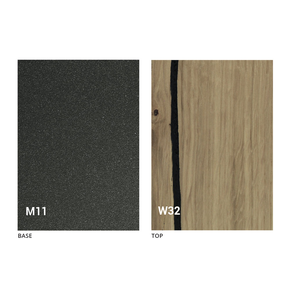 The table top and base can be customized with different sample finishes. For information contact us using the "