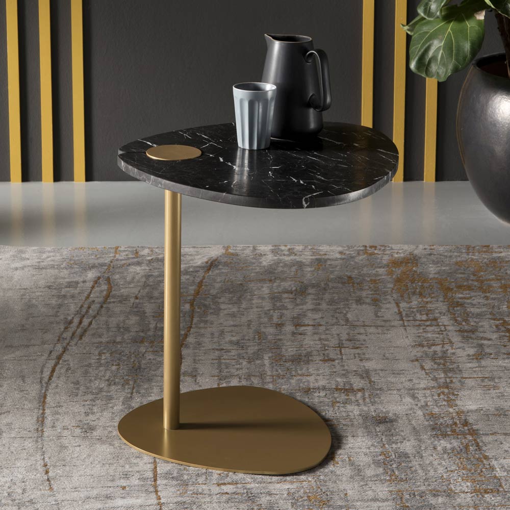 sofa side table for the lounge is inspired by the irregular and natural shapes of the pebbles smoothed by the water. The particular and interesting queues differ to enhance the room and give it a touch of refinement. Its