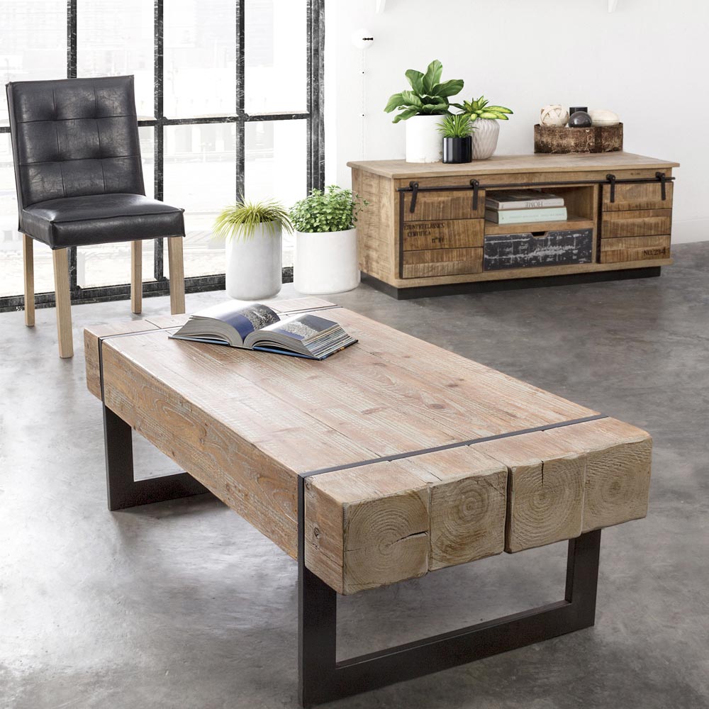 Coffee Table for the Lounge in Fir Wood and Steel - Ilenia
