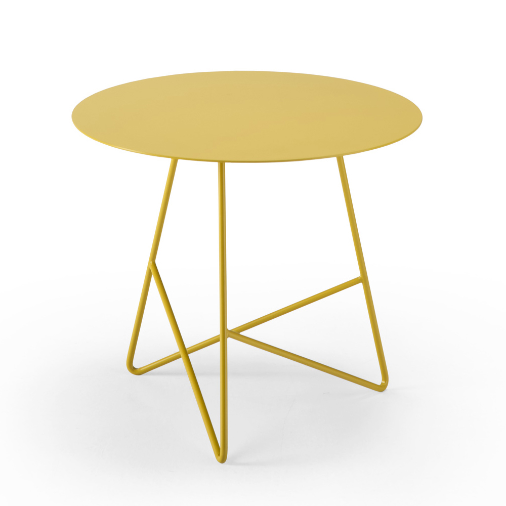 essential and modern round design , with a light but solid structure, which supports the generously sized top.