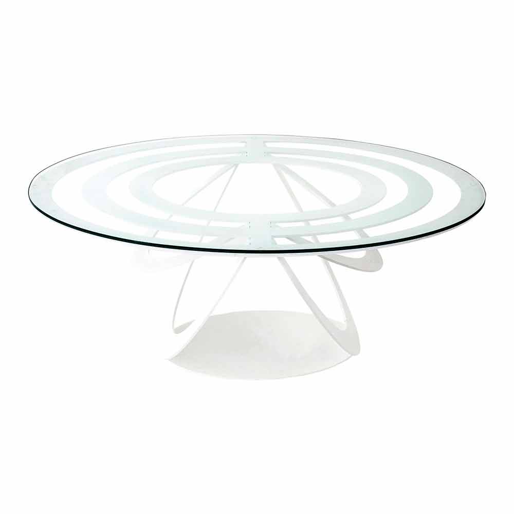 Olfeo is an oval coffee table produced in Italy with first quality materials. The top is in glass (5 mm thick) , while the base is in iron and is available in two different finishes: