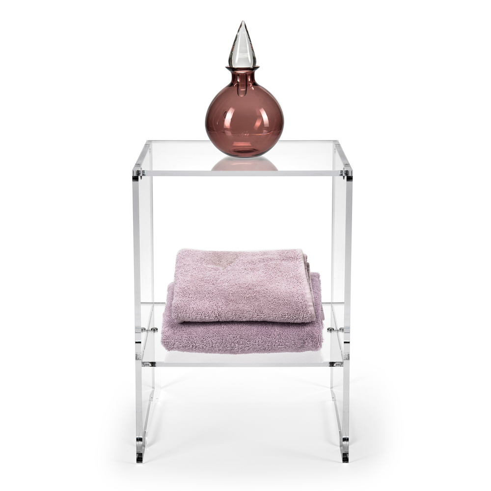 The crystalline transparency and reflective brilliance of the material create a sense of space and light, allowing this piece to blend harmoniously with its surroundings. However, its design is not limited to aesthetics: the smooth surface and clean queues make this coffee table incredibly easy to clean and maintain, ensuring its beauty remains effortlessly pristine.