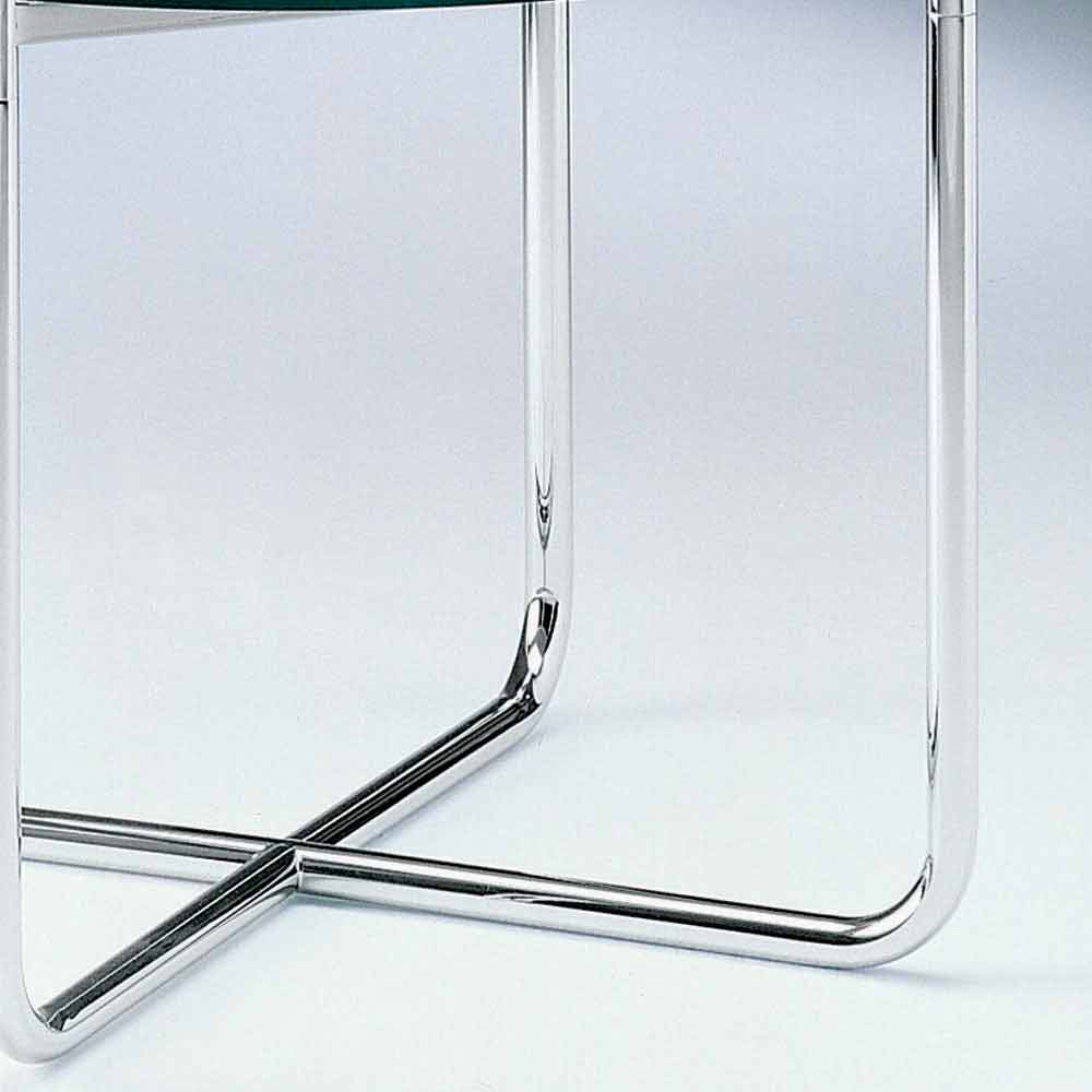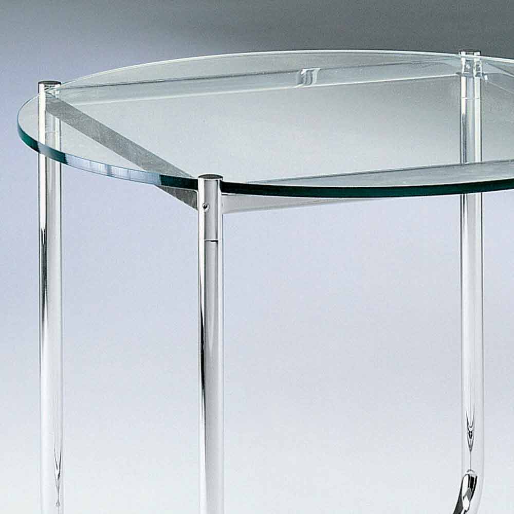 Coffee table with round tempered glass top (5 mm thick) and chromed steel base . Made through a 100% Made in Italy production , this elegant furnishing accessory is characterized by simple queues and shapes and a particularly versatile design which allows it to conquer any living area with a contemporary style, bringing with it an exclusive and stylish touch. vanguard . The wonderful glass top gives the product elegance and character while the steel base ensures a solid and resistant product thanks also to the use of quality materials . The result is a sober and classy coffee table capable of characterizing any stylistic situation with a personality and character .