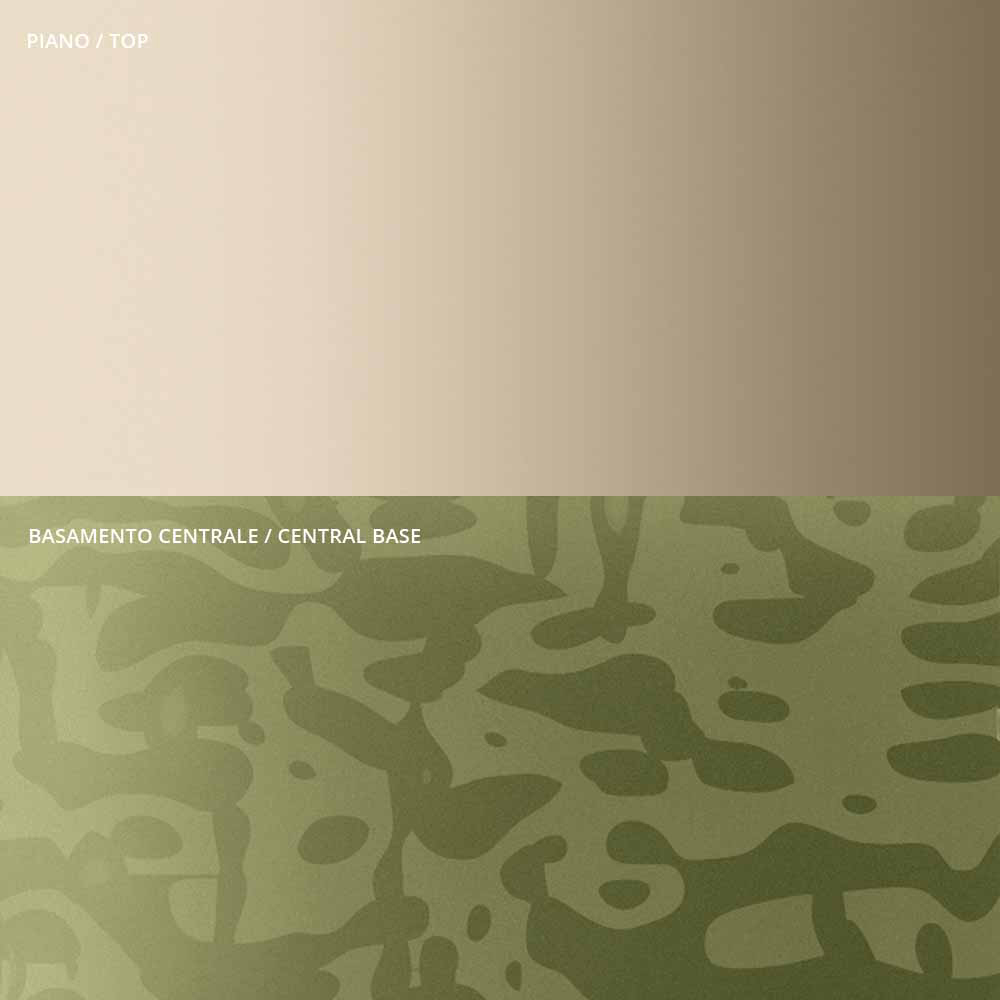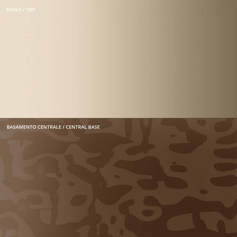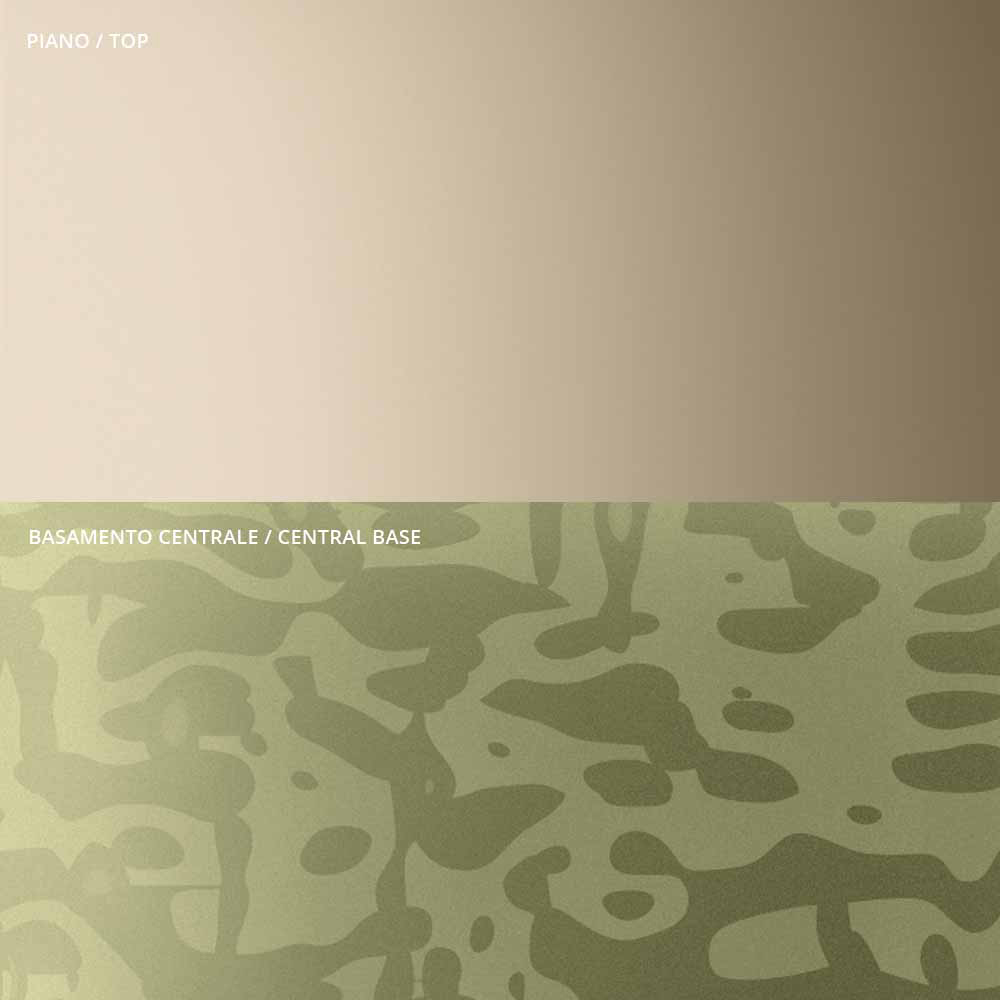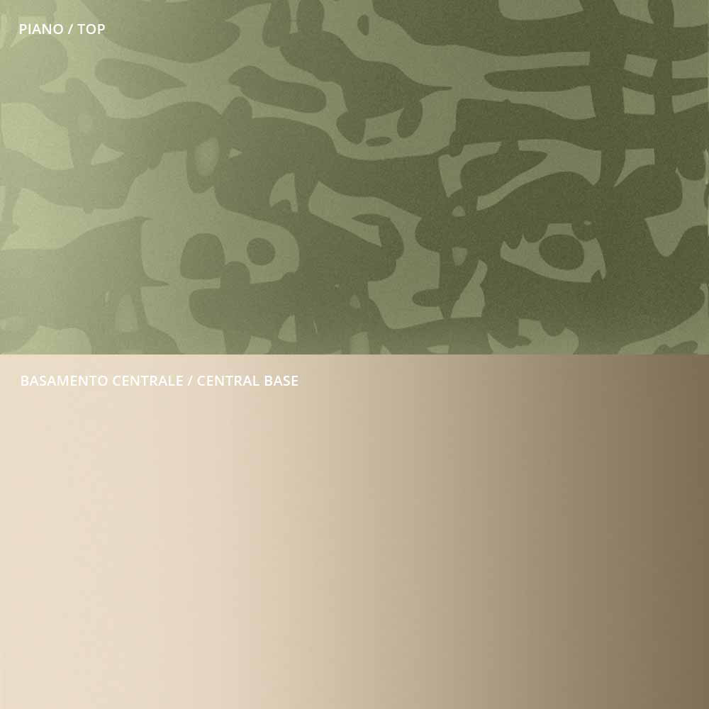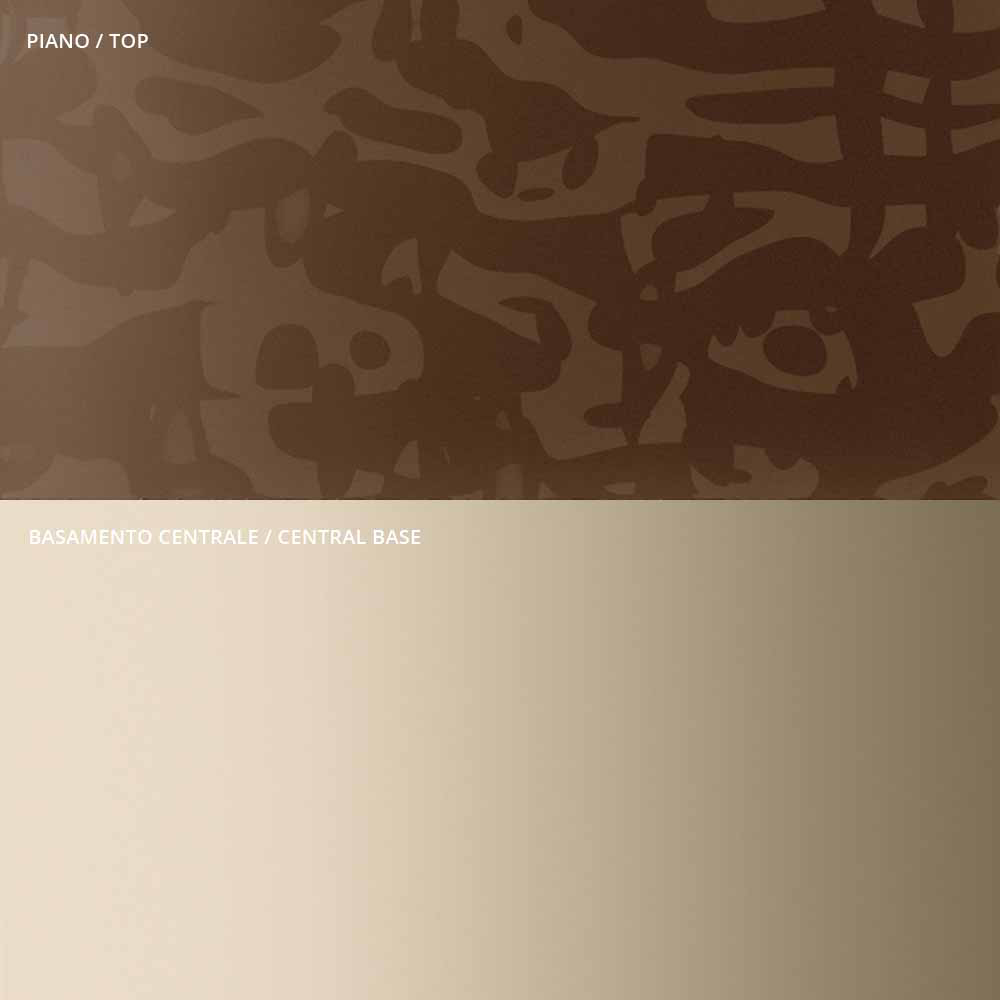 the originality and elegance of the shapes of the top and the base which enhance the detail of the central metal stem, carefully turned in thickness and finished on the surface. The coffee table, alone or in a group, adapts to furnish any room in the home and contract with a