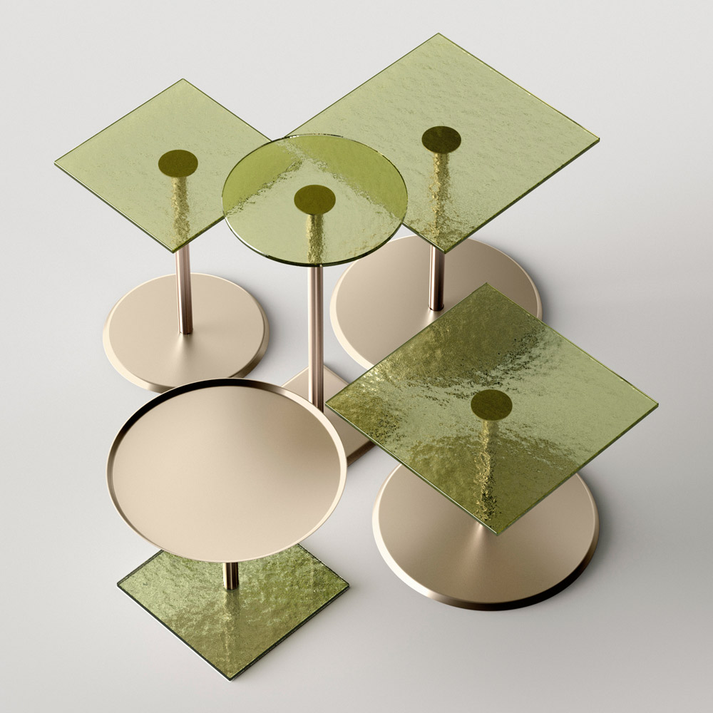 glass base Made in Italy. The central stem is always in metal with a metallic champagne finish.
