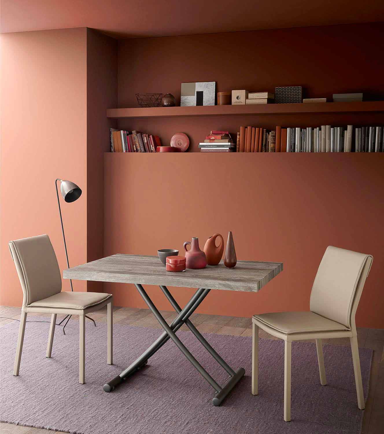 a coffee table to a dining room or kitchen table via a petrol mechanism that can be adjusted in height to the millimetre from 11 cm to 75.5 cm.