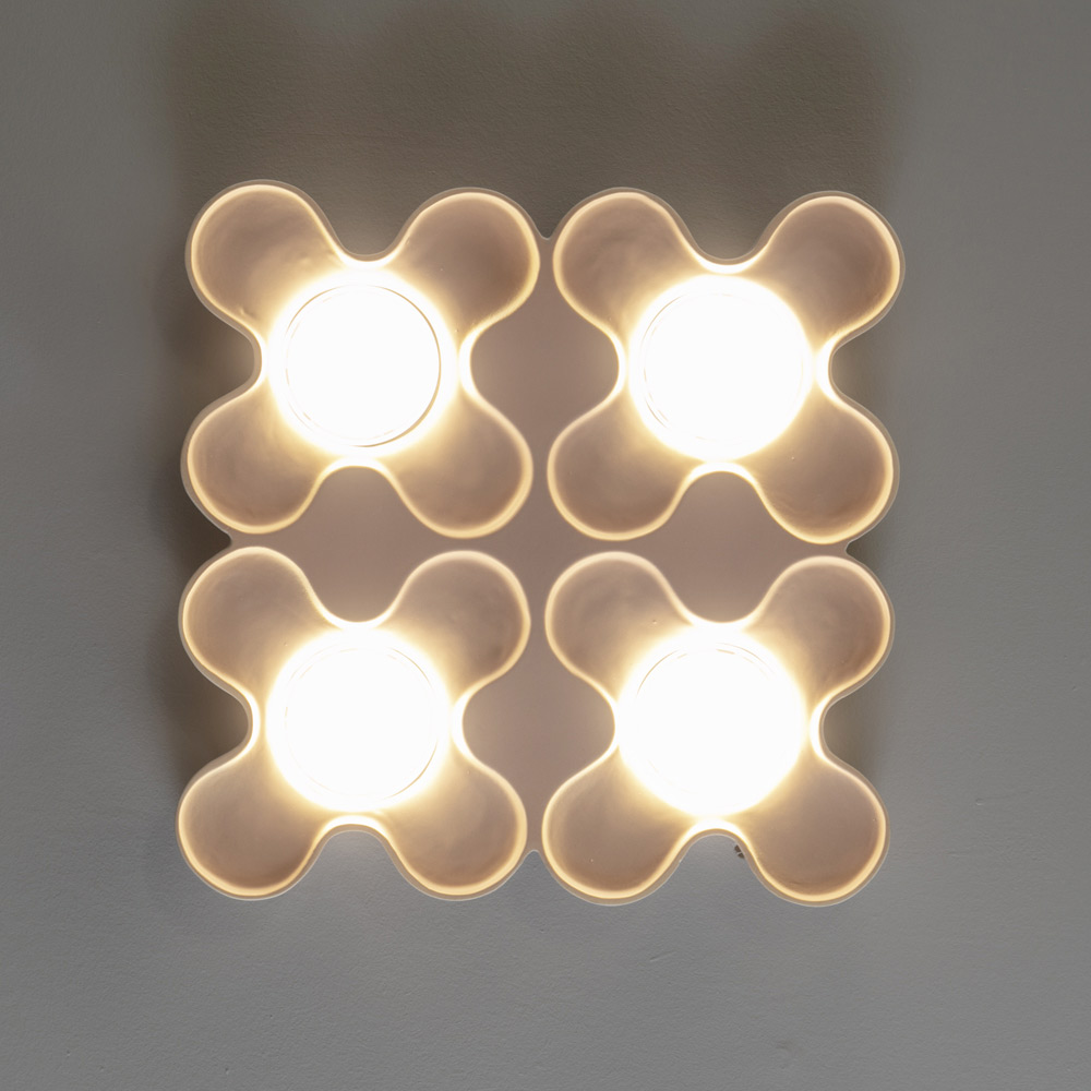 White ceramic ceiling lamp with colored interior and aluminium components made in Italy through a