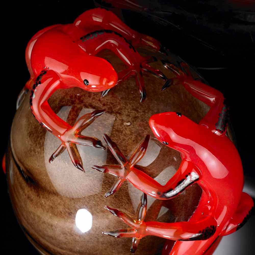 Decorative egg-shaped glass statue with 2 geckos Made in Italy, fine.